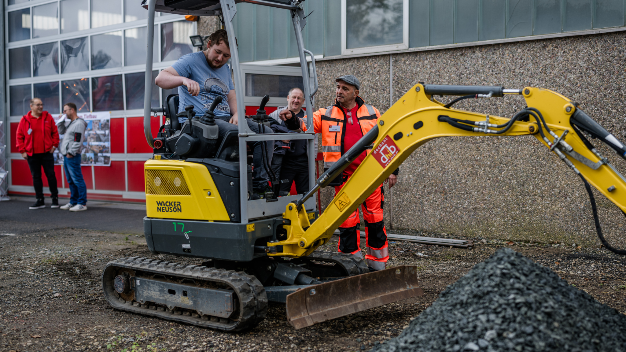 Außerdem gab es noch eine Reihe weiterer spannender Aktivitäten. Besucher konnten in den abwechslungsreichen Alltag auf der Baustelle schnuppern und einmal selbst mit anpacken. Vor allem für die Kinder war das eine tolle Gelegenheit, spielerisch die Arbeitswelt zu erkunden. Beim Betonieren sowie bei Holz- und Motorarbeiten wurde fleißig mitgemacht. Und damit nicht genug! Eine Live-Vorführung von echten Baugeräten ließ die Besucher staunen.