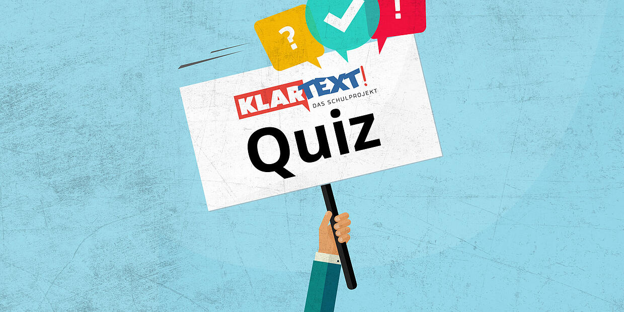 Was gibt es in dieser Woche Neues? In unserem wöchentlichen KLARTEXT!-Quiz können die Schüler online ihr Wissen über das aktuelle Zeitgeschehen überprüfen. Das Wochenquiz wird jeden Mittwoch aktualisiert. Mit Ergebniskontrolle und hohem Spaßfaktor!