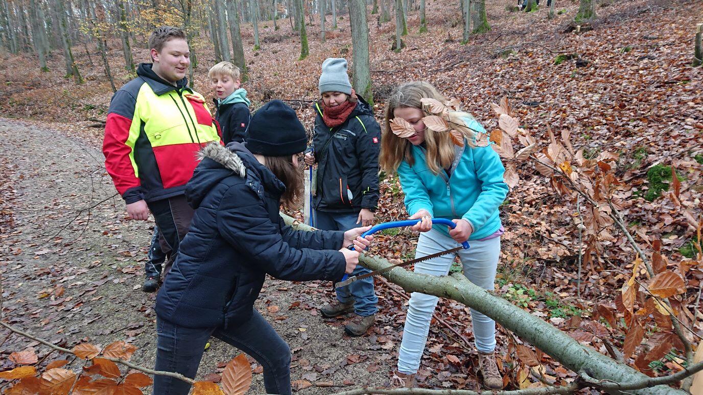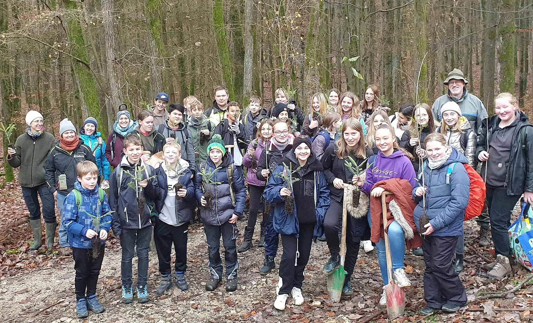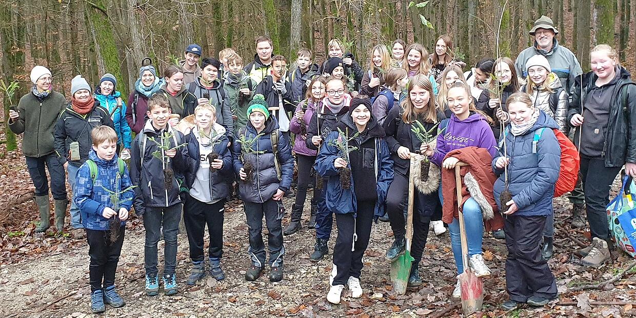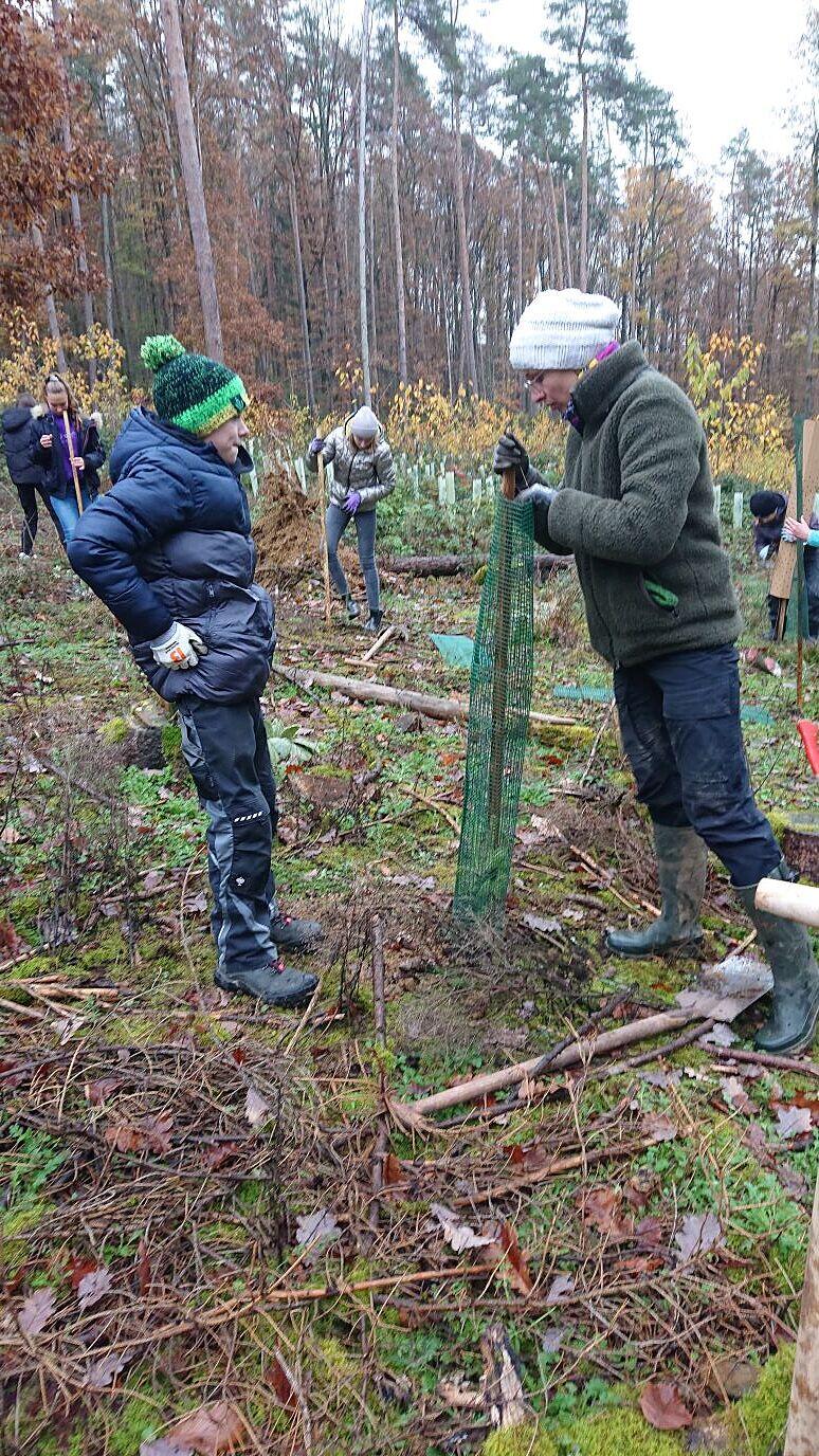 Waldaktion Schüler pflanzen Bäume für die Zukunft Die Schüler der Mittelschule Scheßlitz hatten sichtlich Spaß an der Waldaktion. // privat Die Natur als Klassenzimmer: Schüler der Mittelschule Scheßlitz bei ihrer Waldaktion. // privat Die Natur als Klassenzimmer: Schüler der Mittelschule Scheßlitz bei ihrer Waldaktion. // privat Die Natur als Klassenzimmer: Schüler der Mittelschule Scheßlitz bei der Waldaktion. // privat Fränkischer Tag TEILEN  03.01.2023 Scheßlitz – Rund 70 Baumsetzlinge pflanzten Schüler der Mittelschule Scheßlitz im November auf städtischem Grund, um ein vom Borkenkäfer befallenes Waldstück wieder aufzuforsten. Das waldbauliche Projekt führten die Klassen 6a, 7b und M7a in Zusammenarbeit mit der Waldbesitzervereinigung (WBV) Bamberg e.V., dem Amt für Ernährung, Landwirtschaft und Forsten (AELF) Bamberg und der Gemeinde Scheßlitz durch. Nach einer herzlichen Begrüßung durch Angelika Morgenroth, der 1. Vorsitzende des WBV, und Jörg Dettloff, Förster im Forstrevier Scheßlitz, wurde den Schülern gezeigt, wie ein geschädigter Baum mit der Motorsäge gefällt wird und welche Sicherheitsvorkehrungen durch den Forstwirt getroffen werden müssen. Anschließend wurden drei Arbeitsgruppen gebildet mit unterschiedlichen Aufgabenbereichen, die in rotierendem Wechsel von allen Kindern durchlaufen wurden. In der ersten Gruppe wurden unter Anleitung von Försterin Katharina Rittmaier verschiedene Baumsetzlinge gepflanzt. Zum Schutz vor Wildbefall war darauf zu achten, einen geeigneten Stammschutz, zum Beispiel in Form eines Baumschutzgitters, anzubringen. Eine zweite Gruppe beschäftigte sich mit Eichensämlingen, die in diesem Jahr besonders häufig zu finden sind. Die Bäume würden merken, dass sich das Klima ändert und darum besonders viele Samen produzieren. Deshalb spreche man auch von einem Eichelmastjahr, so Dettloff. In einer spielerischen Aktion wurde in der dritten Gruppe das Baumfällen vom Anfang aufgegriffen, so dass die Schüler selbst in die Rolle von Forstwirten schlüpfen konnten und mit einer Handsäge einen zuvor ausgewählten Baum fällen durften. Nachfolgende Aufgabe war es, nach Augenmaß ein 100 Gramm schweres Baumstück abzuschätzen und anschließend in Teamarbeit abzusägen. Die Stadt Scheßlitz stellte nach getaner Arbeit eine kostenlose Brotzeit mit Getränken für alle Beteiligten bereit. Bürgermeister Roland Kauper war ebenfalls anwesend und verschaffte sich einen Überblick über die Aktion. Ziel des Projektes ist es, den Schülern das Berufsbild des Forstwirts und des Försters näherzubringen und eine Baumpatenschaft anzubahnen. So werden sich diese drei Klassen der Mittelschule Scheßlitz bis zum Ende ihrer Schulzeit ein- bis zweimal im Jahr mit fachlicher Unterstützung der WBV und dem AELF um die Bäume kümmern. Ein nächster Termin ist für Mai 2023 geplant. Von Mareike Tabar, Mattea Postler und Soraya Özdil