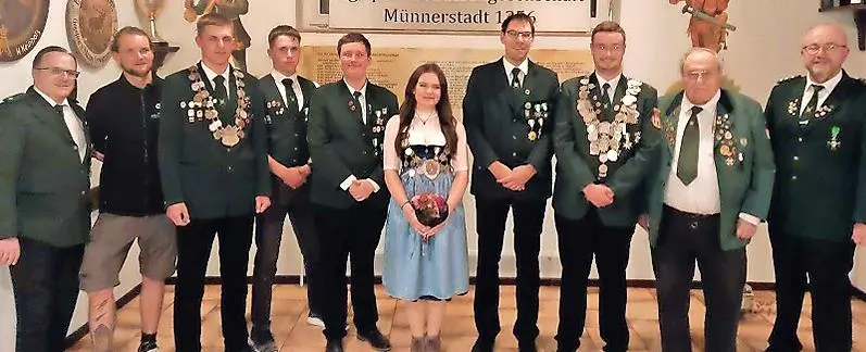 Münnerstadt Bastian Brückner jüngster Schützenkönig in der Geschichte des Königsschießens Die Königshäuser: (von links) Sportleiter Patrick Lumpe, Adrian Bier, Alexander Weber, Lukas Weber, Max Brückner, Emily Müller, Lukas Hammer, Bastian Brückner, Karl Heinz Mauer und 1. Schützenmeister Klaus Brückner. // Renate Brückner TEILEN  vor 9 Stunden Münnerstadt In einer zum Teil emotionalen Königsproklamation konnte der 1. Schützenmeister Klaus Brückner die neuen Königshäuser der Schützengesellschaft Münnerstadt für das Schützenjahr 2026 präsentieren, heißt es in einer Pressemitteilung des Vereins. Zuvor waren die Schützen und die Stadtkapelle Münnerstadt zu Gast beim scheidenden Schützenkönig Christoph Aberer in Großenbrach, um mit ihm und seiner Familie sein Königsjahr ausklingen zu lassen.Nach dem Festzug durch die Stadt zum Schützenhaus, begleitet durch die Freiwillige Feuerwehr Münnerstadt, und dem anschließendem „Königsessen“ konnte der Schützenmeister neben der Schützenfamilie auch Ehrenschützenmeister Walter Köth und den Zweiten Bürgermeister der Stadt Münnerstadt Andreas Trägner begrüßen, der in seinen kurzen Grußworten die Traditionspflege der Schützengesellschaft hervorhob und gleichzeitig mit Blick auf die große Zahl anwesender Jungschützen die gute Jugendarbeit der Schützen lobte: „Ihr macht hier offensichtlich vieles richtig.“ Eine Einschätzung, die er nach der Proklamation der neuen Königshäuser bestätigt sah.Brückner bedankte sich bei den Verantwortlichen des Schießens, vor allem beim Sportleiter Patrick Lumpe und seinen Helfern für die Organisation und die Durchführung des Schießens.Patrick Lumpe und der 2. Schützenmeister Roland Dömling führten im Anschluss die Siegerehrung des Preisschießens durch, das mit zum Teil sehr guten Ergebnissen im Sportpistolen und besonders im Blasrohrwettbewerb aufwarten konnte: Ergebnisblock: Bogen Glücksscheibe: Adrian Bier 12,79 Punkte; Sven Katzenberger 16,84 Punkte; Alexander Weber 24,49 Punkte.Ferdinand Betzer Pokal: Lukas Weber 24,71 mm vom Zentrum; Alexander Weber 30,73 mm; Max Brückner 100,41 mm.Schützenmeister Pokal: Emily Müller 21,20 Punkte; Max Brückner 42,70 Punkte; Alexander Weber 294,00 Punkte.Blasrohr Meisterscheibe: Eugen Weber 119 Ringe; Karola Schmitt 119 Ringe; Patrick Lumpe 117 Ringe.Sportpistole Meisterscheibe: Bruno Rolof 48 Ringe; Heiko Sauer 47 Ringe; Max Brückner 46 Ringe.Kombischeibe LG/LP: Ulrike Aberer 40,8 Punkte; Patrick Lumpe 46,9 Punkte; Roland Dömling 49,1 Punkte.Schmankerlscheibe: Klaus Brückner 23,2 Teiler; Ulrike Aberer 27,0 Teiler; Martin Halbig 75,8 Teiler.Im Anschluss war es wieder am Schützenmeister, Mitglieder für ihre langjährige Mitgliedschaft zu ehren – verbunden mit dem Dank für die Treue zur Gesellschaft: Ehrungsblock: 10 Jahre Mitgliedschaft: Max Brückner, Alexandra Halbig; 15 Jahre: Heinz Giegerich, Werner Hilberth; 25 Jahre: Martin Eyring, Lukas Hammer, Nils Krais, Georg Schreiner; 40 Jahre: Harald Bötsch, Anne Glasauer, Jürgen Schilling, Karola Schmitt; 50 Jahre: Thomas Bildhauer, Heinz Schmitt.Der Höhepunkt des Abends rückte näher. Nach der Entthronisierung der alten Königshäuser und der Übergabe der Erinnerungsgaben des scheidenden Schützenkönigs Christoph Aberer, einer Silbermünze, die an die Apollo Mission vor 55 Jahren erinnert, und einer Gedenktafel für den 2025 sanierten Schützenhof mit der Aufschrift „ Altes bewahren, Neues gestalten“, stand die Frage im Raum, wie sehen die Könighäuser für das Schützenjahr 2025/26 aus.Der Schützenmeister stellte die Proklamation unter das Motto „Noch nie“. Noch nie zuvor hatte der Jungschütze Alexander Weber im Bogenbereich den Titel erringen können und setzte sich knapp gegen seinen ersten Gefährden Adrian Bier und seinen zweiten Gefährten Lukas Weber durch. Noch nie führte eine junge Dame die Schützenjugend an. So konnte sich Emily Müller gegen die beiden Ritter Max Brückner und Alexander Weber, der seit kurzem auch mit dem Luftgewehr aktiv ist, durchsetzen. Emotional wurde es dann, als der Schützenmeister seinen 18-jährigen Sohn Bastian zum neuen Schützenkönig proklamieren konnte. Noch nie war ein Schützenkönig in der über 100-jährigen Geschichte des Königsschießens jünger. Ihm zur Seite stehen mit Lukas Hammer als 1. und Karl-Heinz Mauer als 2. Ritter zwei erfahrene Schützenbrüder, die ihn durch sein Königsjahr begleiten werden.Mit dem Schützengruß und den besten Wünschen für das Schützenjahr beendete der Schützenmeister den offiziellen Teil. Natürlich wurde im Anschluss noch bis in die Morgenstunden mit den Königshäusern gebührend gefeiert. red Die Geehrten für langjährige Mitgliedschaft: (von links) 1. Schützenmeister Klaus Brückner, Martin Eyring, Karola Schmitt, Lukas Hammer, Max Brückner, Thomas Bildhauer und 2. Bürgermeister Andreas Trägner. //