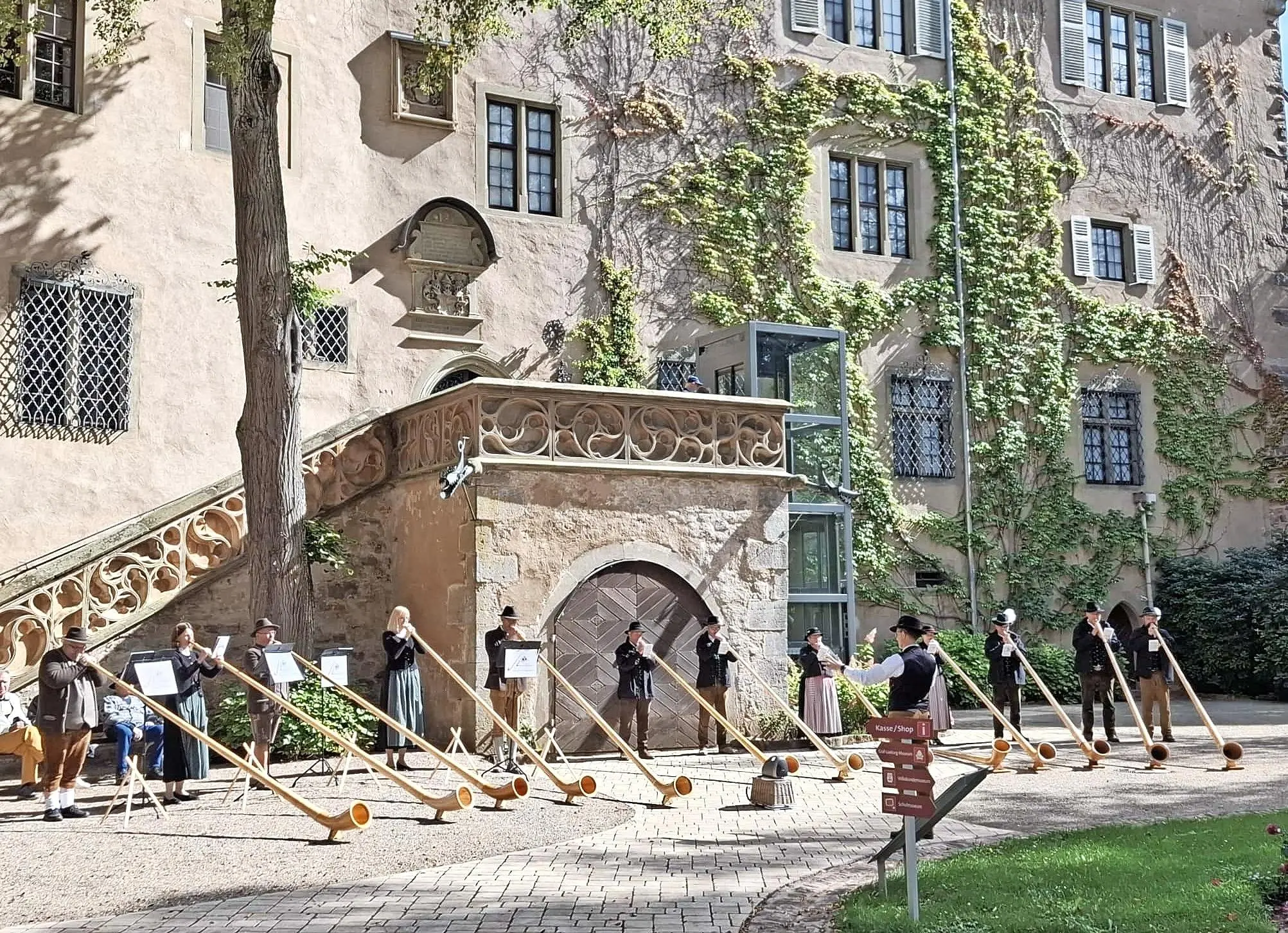 Aschach bei Bad Kissingen Benefizkonzert für die Kissinger Hütte // TEILEN  26.03.2025 Aschach bei Bad Kissingen Um beim Wiederaufbau der Kissinger Hütte zu helfen, laden die Alphornbläser Schwarze Berge, die Lauertaler Alphornbläser und Rhöner Alphornklang mit Unterstützung der Museen Schloss Aschach zu einem Benefizkonzert ein. Im Rahmen der Saisoneröffnung der Museen erklingen am Sonntag, 30. März, um 11 Uhr im Schlosshof die Alphörner – als Zeichen der Hoffnung und Solidarität, heißt es in einer Pressemitteilung der Museen Schloss Aschach. Der Eintritt für das Konzert ist frei. Um Spenden zugunsten der Kissinger Hütte wird gebeten, so die Pressemeldung. Foto: Erika Pascher