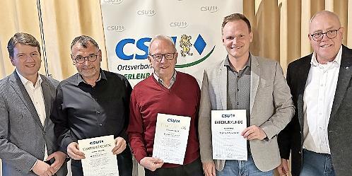 Neben den Neuwahlen standen auch Ehrungen für langjährige Mitglieder im Mittelpunkt der Versammlung. Für ihre Parteizugehörigkeit, Engagement und ihre Treue zur CSU wurden Engelbert Klein für 50 Jahre, Robert Erhard für 40 Jahre und Nico Rogge für zehn Jahre geehrt. Die CSU Oerlenbach hat auch für dieses Jahr einige Aktionen angekündigt und blickt optimistisch in die Zukunft. red