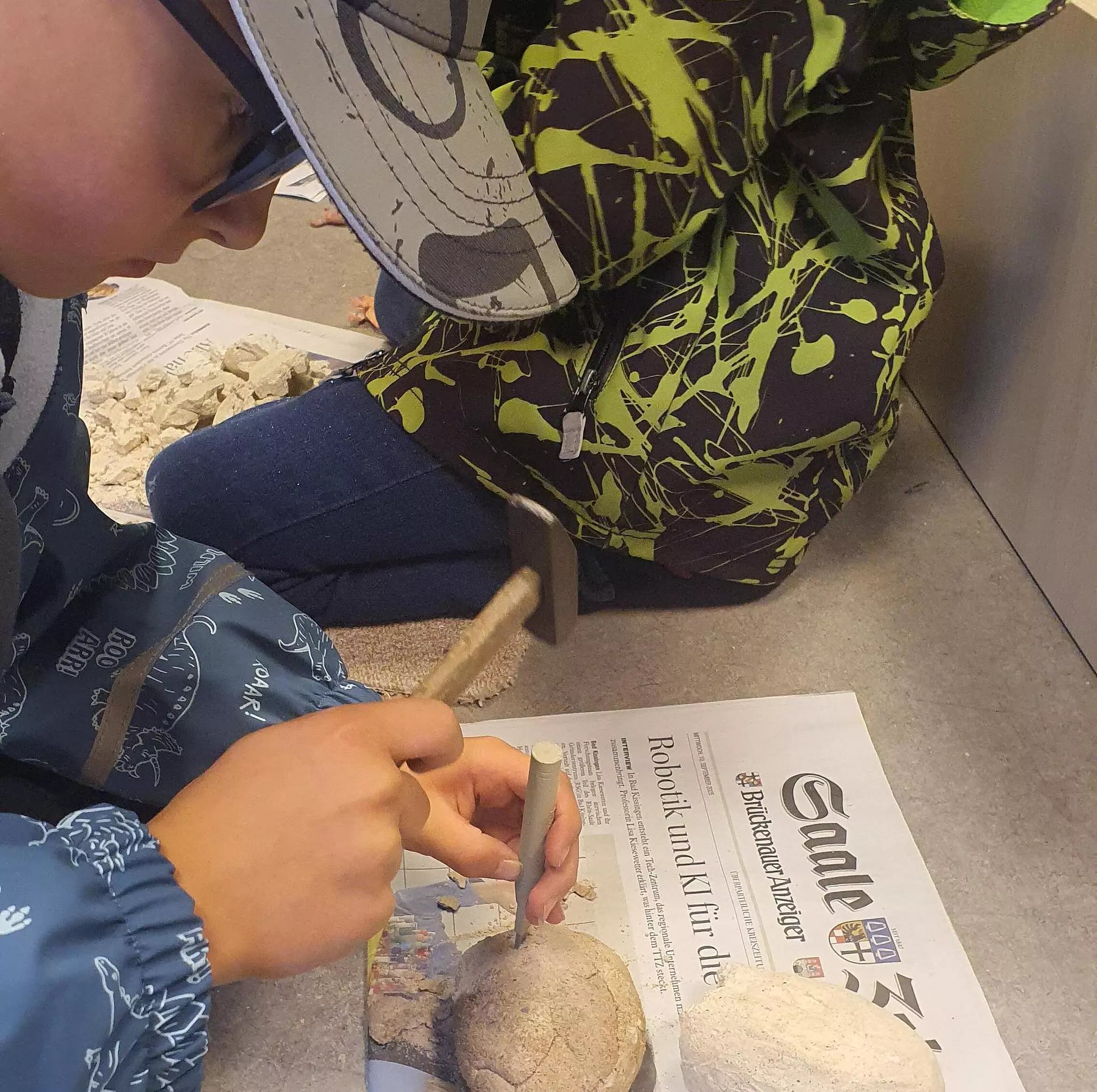 Aschach bei Bad Kissingen Dino-Eier an der Bücherei Hier wird ein Dino-Ei vorsichtig geöffnet. // Barbara Seufert/KÖB Aschach von Kath. Öffentliche Bücherei Aschach TEILEN  06.10.2025 Aschach bei Bad Kissingen Die Dinosaurier waren unterwegs und hatten ihre Dino-Eier auf dem Platz rund um die Bücherei in Aschach versteckt. Ausgerüstet mit allerlei Werkzeug fanden sich Kinder im Alter von drei bis acht Jahren in der Aschacher Bücherei ein. Zunächst hörten sie die Geschichte von „Minus“ („Minus drei“ von Ute Krause erschienen im cbj Verlag) dem Saurierkind, das sich nichts sehnlicher als ein Haustier wünscht. Doch seine Eltern trauen ihm die Verantwortung dafür nicht zu. Deshalb bietet er durch Aushang die Haustierpflege und -Betreuung an. Diese Aufgabe erledigt er so gut, dass er seine Eltern überzeugen kann. Er selbst möchte nun aber gar kein Haustier mehr, da er erkannt hat, wie viel Arbeit und Verantwortung dahinter steckt. Doch zu spät - seine Eltern überraschen ihn mit einem Urmensch namens Lucy. Gespannt verfolgten die Kinder die Geschichte und fanden sich teilweise in „Minus“ wieder.Anschließend wurden die Dino-Eier gesucht und vorsichtig geöffnet. Voller Begeisterung wurden die Dino-Babys pfleglich vom Staub befreit.Die Geschichte von „Minus“ gefiel den Kindern so gut, dass auch der zweite Teil der Reihe vorgelesen wurde. Barbara SeufertKath. Öffentl. Bücherei Aschach