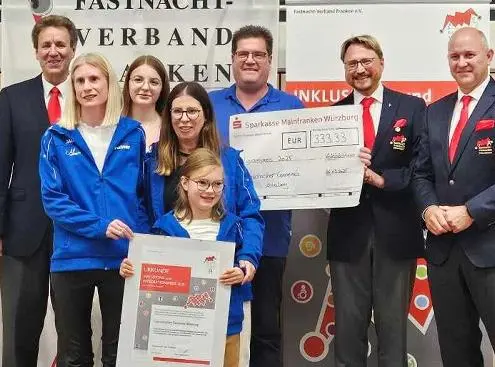 Gauaschach Ein Preis für die Inklusion Auf dem Bild (von links): Marco Anderlik (Präsident Fastnachtverband FVF), Cynthia Teubert, Johanna Scheuerer, Julia Weissenberger, Nele Göbel, Frank Oswald (Gesellschaftspräsident GCA), Tobias Brand (Vizepräsident FVF) und Jürgen Förster (Bezirkspräsident FVF Unterfranken). // Marina Scheuerer TEILEN  29.10.2025 Gauaschach Die Carnevals-Abteilung des TSV Gauaschach ist mit dem Integrations- und Inklusionspreis 2025 ausgezeichnet worden. Die Verleihung fand beim Verbandstag des Fastnacht Verband Franken (FVF) in Waigolshausen (Landkreis Schweinfurt) statt. Grund für diese Ehrung ist die Integration zweier Mädchen in die Tanzgruppen der Gauaschacher Carnevals-Abteilung (GCA) . Nele Göbel ist neun Jahre alt und tanzt seit vier Jahren, zuerst in der Purzelgarde und in diesem Jahr erstmals beim Showtanz der Minis. Es war eine Selbstverständlichkeit für die Tanzgruppe, Nele mit ihrer Gehhilfe aufzunehmen und zu integrieren, wie es in einer Pressemitteilung heißt. Lea Heinlein ist zehn Jahre alt und kam mit Down Syndrom zur Welt. Sie tanzte ebenfalls zuerst in der Purzelgarde, und seit dieser Session ist sie bei den Minis aktiv. Beide Mädchen hatten 2023 ihren ersten Auftritt vor Publikum bei den Prunksitzungen in Gauaschach. Die Integration ist ein besonderer Verdienst der jungen Trainerinnen Katharina Rapsch, Celine Meder und Johanna Scheuerer. Den Showtanz der Minis trainieren Cynthia Teubert und Julia Weissenberger. Bei der Überreichung des Ehrenpreises, der mit 333,33 Euro dotiert ist, spendeten die Verbandsmitglieder riesigen Applaus. Die Tanzgruppen. wollen mit dem Geld gemeinsam etwas in der Freizeit unternehmen, eine Aktion, bei der die Inklusion weiter gefördert wird. red
