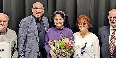 Eine weitere besondere Ehrung galt an diesem Abend Otto Dünisch, seit vielen Jahren Ehrenvorsitzender des Vereins. Er wurde für 65 Jahre aktives Singen ausgezeichnet; seine Bassstimme ist bis heute eine wertvolle Stütze und Bereicherung für den Chor.