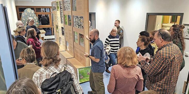 Ausstellung „Facettenreiche Insekten“: unersetzliche Akteure in den Ökosystemen Die Auftaktveranstaltung zur Wanderausstellung war sehr gut besucht. // Volker Bauer TEILEN  21.10.2025 Oberbach Mit einer gelungenen Auftaktveranstaltung wurde im Biosphärenzentrum Haus der Schwarzen Berge in Oberbach die Wanderausstellung „Facettenreiche Insekten – Vielfalt, Gefährdung, Schutz“ eröffnet. Zahlreiche Besucherinnen und Besucher aus nah und fern folgten der Einladung, um in die faszinierende Welt der Insekten einzutauchen, heißt es in einer Pressemitteilung. In ihrer Begrüßung betonte Doris Pokorny, Leiterin der bayerischen Biosphärenverwaltung, die enorme Bedeutung der Insekten für ökologische Leistungen. „Insekten sind unersetzliche Akteure in unseren Ökosystemen. Ohne sie fehlt das Summen im Sommer, die Bestäubung vieler Pflanzen und der Nährboden für neues Leben“, so Pokorny.Anschließend widmeten sich drei Kurzvorträge unterschiedlichen Perspektiven zur Insektenvielfalt in der Rhön: Wiltrud Fischer vom WWF Deutschland stellte das Projekt Brommi – Biosphärenreservate als Modelllandschaften für den Insektenschutz vor. Sie zeigte, wie in der bayerischen Rhön Landwirte und Kommunen gemeinsam mit dem Projekt Brommi Maßnahmen umsetzen, um Lebensräume für Insekten zu schaffen. Tobias Birkwald beleuchtete die Artenvielfalt in den Kernzonen des Biosphärenreservats und deren Rolle bei der Zersetzung von Totholz – ein entscheidender Prozess für natürliche Kreisläufe. Tina Bauer, die das Projekt Citizen Science in der Bayerischen Biosphärenreservatsverwaltung verantwortet, präsentierte das Engagement zahlreicher Freiwilliger, die mit Begeisterung Daten über die Verbreitung von Insekten in der Rhön sammeln. Vielfältiges RahmenprogrammIm Anschluss erkundeten die Gäste bei einer Führung die interaktive Ausstellung, die mit anschaulichen Modellen, Mitmachstationen und eindrucksvollen Fotos begeistert, heißt es weiter. Die Wanderausstellung ist noch bis 15. Januar 2026 im Biosphärenzentrum Oberbach zu erleben. Begleitend lädt ein abwechslungsreiches Rahmenprogramm dazu ein, den Insektenreichtum der Rhön aus verschiedenen Perspektiven zu entdecken: Am Mittwoch, 22. Oktober, heißt es ab 18 Uhr: Tagfalter quo vadis. Hilfe für den Streifenbläuling (Tilmann Fruntke); Gemeinsam für den Schwarzen Apollo (Tina Bauer), am Mittwoch, 5. November, geht es ab 18 Uhr ums Thema Dynamische Heimat – Insekten in den Kernzonen (Tobias Birkwald) und am Mittwoch, 19. November, ebenfalls ab 18 Uhr sind Schmetterlinge im Landkreis Bad Kissingen (Oskar Jungklaus) das Thema. Ein weiterer Vortrag ist für den 3. Dezember vorgesehen, Thema und Vortragender werden noch bekanntgegeben. Hintergrund Die Ausstellung „Facettenreiche Insekten“ wurde im Rahmen des Projekts ProInsekt entwickelt und im Bundesprogramm Biologische Vielfalt durch das Bundesamt für Naturschutz (BfN) mit Mitteln des Bundesministeriums für Umwelt, Naturschutz, nukleare Sicherheit und Verbraucherschutz (BMUV) sowie der Deutschen Bundesstiftung Umwelt (DBU) gefördert. In die Rhön gelangte sie durch das Projekt Brommi – Biosphärenreservate als Modellregionen für den Insektenschutz. Vor Ort betreut wird die Ausstellung vom Naturpark Bayerische Rhön. Das Rahmenprogramm wird durch die Bayerische Verwaltungsstelle Biosphärenreservat Rhön koordiniert. red
