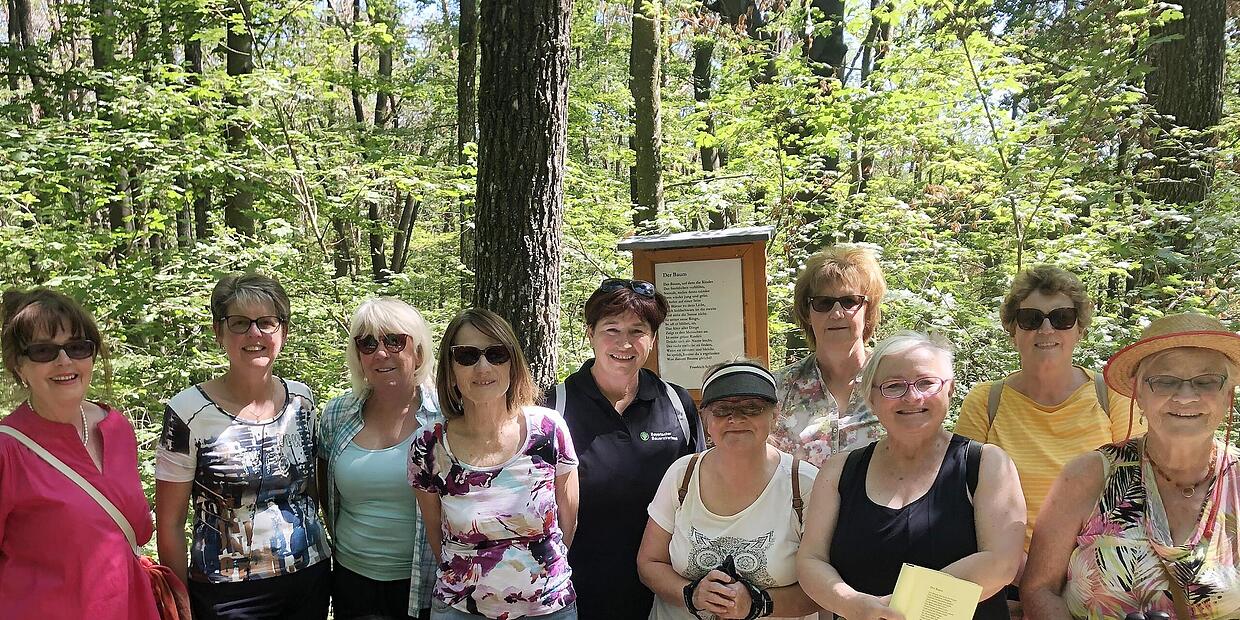 Poetischer Waldwanderweg Gedichte unter Bäumen Ortsbäuerin Helene Greubel organisierte für zwei Gruppen eine Führung mit Charlotte Wahler (3. von rechts) über den Ramsthaler „Poetischen Waldwanderweg“ . // Andreas Lomb von Andreas Lomb TEILEN  14.06.2023 Ramsthal Der 2003 geschaffene „Poetische Waldwanderweg“ in Ramsthal, der an der Urbanus-Statue oberhalb der Weinberge beginnt und am Bildstock am Ende des Rassthals endet, war das Ziel von zwei geführten Wanderungen, die die Ramsthaler Ortsbäuerin Helene Greubel für das Bildungswerk des Bayerischen Bauernverbandes organisiert hatte. Die Initiatorin des Waldwanderweges, Diplom-Soziologin Charlotte Wahler, hatte damals mit dem Weg eine einzigartige Möglichkeit geschaffen, auf dem Höhenkamm entlang der Weinberge Gedichte aus Vergangenheit und Gegenwart mit einem Bezug zum Wald kennenzulernen. Sie führte auch die Gruppen und trug die Gedichte vor. Für die Gäste gab es dazu weitere interessante Informationen. Die Poeten gehen mit ihren 17 Gedichten aus zwei Jahrhunderten auf verschiedenen Stimmungslagen ein. Beide Gruppen zeigten sich sehr beeindruckt von der Veranstaltung und nutzten eine Pause mit Getränken zum Austausch untereinander. hla