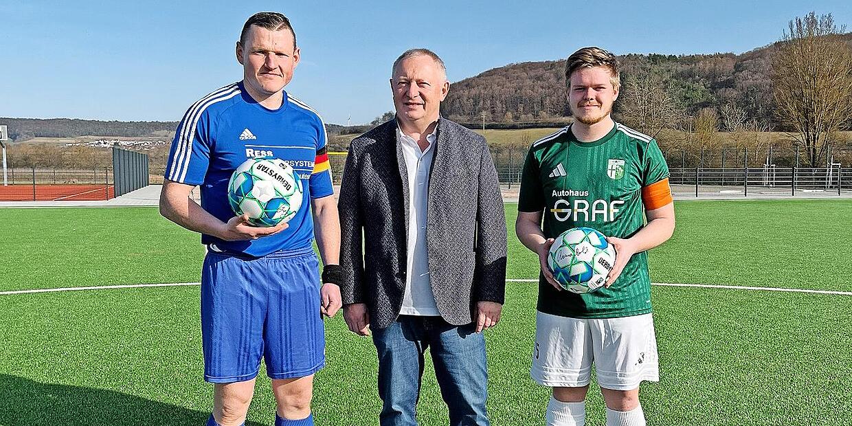 Die zukünftigen Schülerinnen und Schüler des Schulzentrums Hammelburg erhalten neben einem modernen Schulgebäude auch eine neue Sportanlage. Der dazugehörige Kunstrasenplatz wurde im Rahmen eines Spiels der SG FC Hammelburg/FC Fuchsstadt gegen die SG Arnshausen/Reiterswiesen/Bad Kissingen eingeweiht. Vor dem Spiel erhielten beide Mannschaften jeweils einen signierten Fairtrade-Fußball von Landrat Thomas Bold.