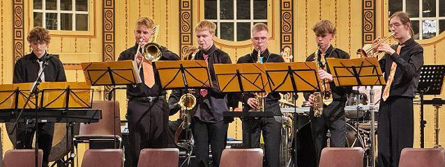 Bad Kissingen Konzert mit finnischen Freunden Saxofonistin Letizia Albert singt die Ballade zum Film „Skyfall“, musikalisch begleitet von der Big Band. // Philipp Dippl von Philipp Dippl TEILEN  15.10.2025 Bad Kissingen Die Blowin’ Horns Big Band der Musikschule Bad Kissingen hat zu einem ganz besonderen Konzert in die Wandelhalle geladen. Anlass des Sonderkonzerts war der Besuch einer jungen Jazz-Combo aus Finnland, der Epmo Combo. Die jungen finnischen Musiker legten auch sofort mit jazzigen Rhythmen los und sorgten von Beginn an für gute Stimmung. Sie nahmen die Zuhörer mit auf eine musikalische Reise von Spanien über Ägypten nach New York. Mit einer jazzigen Version der Habanera aus der Oper Carmen von Georges Bizet führte der Weg über die Jazznummer Pharao’s Funk bis hin zum Genreklassiker Birdland. Der letzte Titel ist eine Hommage an den gleichnamigen Jazzclub in der 52. Straße in Manhattan. Musikalischer Leiter aus OberthulbaDoch wie kam es überhaupt dazu? Die Epmo Combo ist der Bigband der Musikschule Südösterbotten aus der im Westen Finnlands gelegenen Stadt Seinäjoki entsprungen. Die Combo fand vor rund einem Jahr zusammen, um an dem nationalen Musikwettbewerb „Hullu Puhallus“, einer Art „Jugend musiziert“, teilzunehmen. Die acht jungen Musiker belegten dabei den zweiten Platz. All das erzählte in lockerer Weise, nicht ohne Stolz und mit fränkischem Schlag in der Zunge, Detlev Stürzenberger, der musikalische Leiter der Epmo Combo. Er ist es auch, der die Verbindung nach Bad Kissingen aufgebaut hat. Denn nicht nur ist der Ort Seinäjoki die Partnerstadt von Schweinfurt. Stürzenberger selbst ist gebürtig aus Oberthulba. Er ist vor mehr als dreißig Jahren der Liebe zur finnischen Natur und zu einer bestimmten Dame wegen nach Finnland ausgewandert. Auch die Titelsongs zweier James-Bond-Streifen wurden von der Combo, bestehend aus sieben Musikern und einer Musikerin, zum Besten gegeben und man merkte, dass gerade diese berühmten Bond-Songs den Musikern, aber auch dem Publikum besondere Freude bereiteten. Einen musikalischen Scherz zum Schluss ließ sich Leiter Stürzenberger nicht nehmen, als er seine jungen finnischen Jazzfreunde einen Schecher, einen traditionellen fränkischen Volkstanz, als Zugabe spielen ließ. Eine Hommage an seine eigene Jugend, als er bei der Hassenbacher Stubenmusik selbst noch musiziert hat, wie er erzählte. Die steckt gewissermaßen fast noch in den Kinderschuhen. Sie wurde im Herbst 2022 gegründet und gab im März 2023 ihr erstes Konzert. Frank Brixel, der an der Musikschule Trompete unterrichtet, formte in dieser kurzen Zeit eine Big Band von wirklich beeindruckender Größe und Volumen. Das Repertoire umfasst zahlreiche Klassiker des Genres, über Swing, Blues und Funk bis hin zu modernen Popsongs. Die Blowin’ Horns Big Band nahm das Publikum ebenfalls mit auf eine musikalische Reise von Nord- bis Südamerika. Los ging es mit dem Stück „Gonna Fly Now“, der Titelmelodie des Films „Rocky“. Die Weiten des amerikanischen Westens wurden mit dem Song „Route 66“ spürbar. Mit „Uptown Funk“ von Bruno Mars war auch eine neuere Nummer im Konzertprogramm dabei. Doch selbst bei der Kissinger Big Band durfte an diesem Abend ein Stück aus dem umfangreichen Katalog der James-Bond-Titelsongs nicht fehlen. Saxofonistin Letizia Albert sang die Ballade zum Film „Skyfall“, musikalisch begleitet von der Big Band. Aber auch legendäre Jazznummern wie „Watermelon Man“ oder „On the sunny side of the street“ begeisterten das Publikum. Gemeinsam „Africa“ von Toto gespieltNicht nur James Bond, auch das Thema „Reise“ zog sich wie ein roter Faden durch den Abend. Zum Abschluss fanden sich alle Musiker noch einmal gemeinsam auf der Bühne ein. Die Bad Kissinger und ihre neuen finnischen Freunde spielten gemeinsam „Africa“ der US-amerikanischen Rockband Toto und blickten somit musikalisch noch einmal auf den Kontinent. Das gemeinsame Abschiedsstück wurde dementsprechend gebührend mit Applaus und Standing Ovations gewürdigt. Es war ein toller Abend, bei dem junge, musikbegeisterte Menschen ihr Können und ihre Leidenschaft zu dieser Art der Musik dem Publikum unter Beweis stellten. Man kann nur hoffen, dass sich aus diesem ersten Gemeinschaftskonzert der Epmo Combo aus dem finnischen Seinäjoki und der Blowin’ Horns Big Band der Musikschule Bad Kissingen weitere musikalische Projekte und vielleicht sogar eine tiefe Musikerfreundschaft entwickeln. Die Epmo Combo entsprang der Bigband der Musikschule Südösterbotten aus der im Westen Finnlands gelegenen Stadt Seinäjoki. //