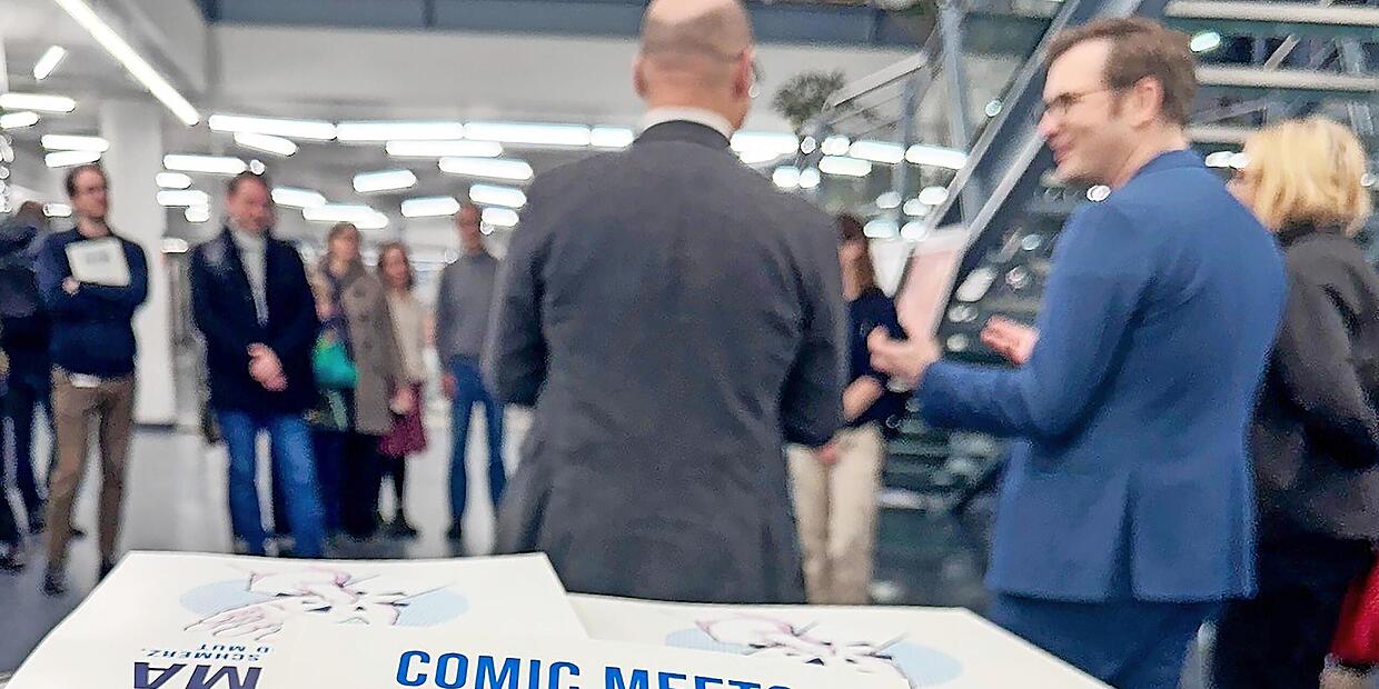 Mit beeindruckender Kreativität verbinden die gezeigten Werke Kunst und Medizin, Humor und Schmerz, Realität und Fantasie. Prof. Dr. med. univ. Georg Schett, Direktor der Medizinischen Klinik 3 – Rheumatologie und Immunologie des Uniklinikums Erlangen, und Prof. Dr. Dr. Axel Hueber, Abteilungsleiter der Rheumatologie des Klinikums Nürnberg und Initiator von „Comic Meets Rheuma“, haben die Ausstellung jetzt zusammen mit Lisa Neun, Künstlerin und erste Vorsitzende des Comicmuseums Erlangen, mit einer Vernissage eröffnet.