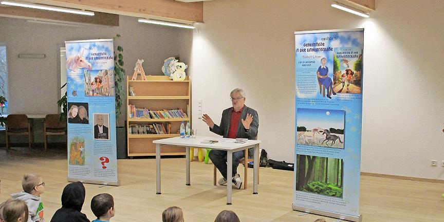 In der Aula las er aus seinem Kinderbuch „Geheimnisse aus der Einhornstraße“ vor.