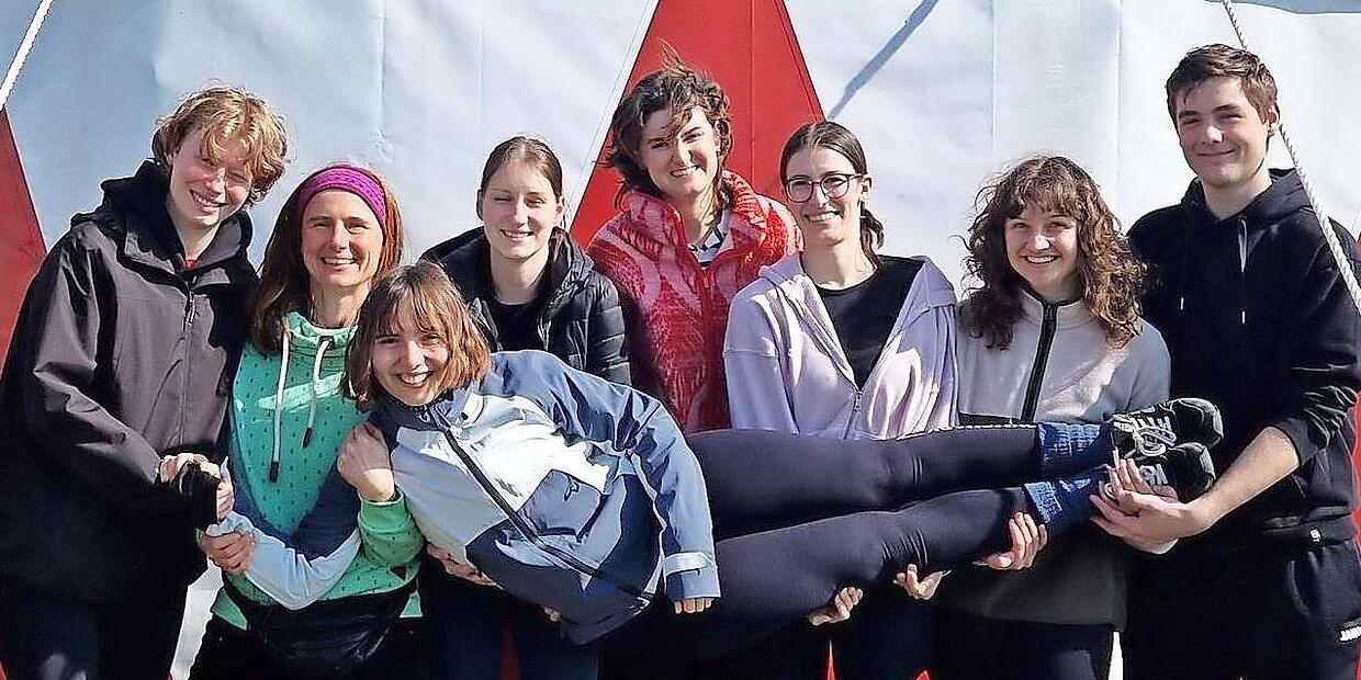 Die acht angehenden Zirkustrainerinnen – Susanne Spreng (Gemünden), Julian Baumann (Geroldshausen), Marla Hoffmann (Fulda), Lilien Weber (Kürnach) sowie Samira Frank, Tabea Thoma, Tabea Heunisch und Leonie Pflüger (alle Würzburg) – hatten bereits vor zwei Wochen eine dreitägige zirkuspädagogische Grundausbildung absolviert. In dieser lernten sie verschiedene Zirkustechniken wie Diabolo, Fakir, Laufkugel, Drahtseil oder Trapez kennen und setzten sich mit der erlebnispädagogischen Wirkung der Zirkusarbeit auseinander.