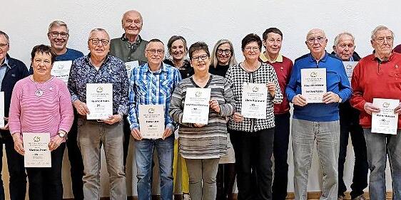 Für ihre Treue zum Verein wurden viele Mitglieder ausgezeichnet. 15 Jahre: Charlotte Richter; 25 Jahre: Marlene Zirkel, Reinhold Hahn, Barbara Jäger, Jürgen Blum; 40 Jahre: Dieter Jost, Hans Wagner; 50 Jahre: Birgit Poek-Kleinhenz, Elvira Reinmann, Walter Daissler, Georg Heinz; 60 Jahre: Rainer Betz, Ingrid Heinz; 70 Jahre: Reinhold Hählein – eine seltene Ehrung. Hähnlein war früher selbst Vorsitzender des Vereins. Die Vorstandsmitglieder Michael Worschech, Eva Beck und Regina Rubi überreichten die Ehrennadeln und Urkunden.