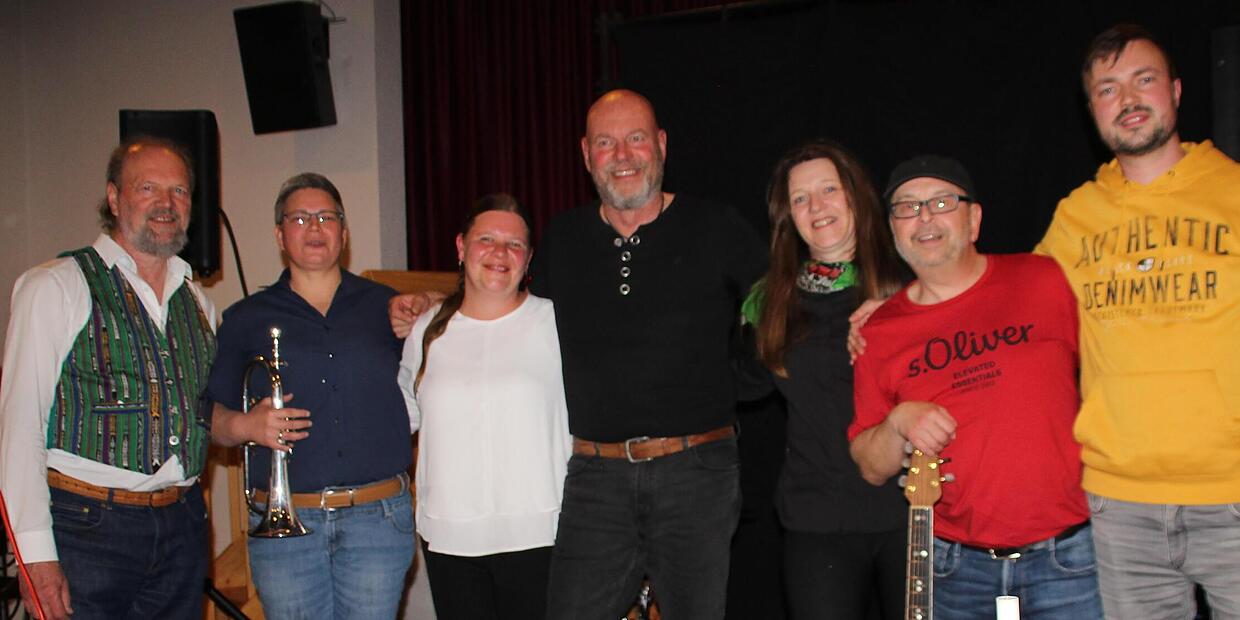 Große Begeisterung rief das Lied „Ich wollte nie erwachsen sein“ hervor. Als Solistin am Flügelhorn wurde Anke Stollberger so gefeiert, dass eine Zugabe unumgänglich war. Beim Lied „Mir gengan alle unsern Weg“ lud Klaus Beck die Gäste zum Mitsingen ein – und der restlos gefüllte Saal stimmte begeistert mit ein. Noch einmal ganz still wurde es bei Klaus Becks gefühlvoller Interpretation von „Wenn sie diesen Tango hört“, begleitet von Marius Werner am Piano. Mit einer eindrucksvollen Version von „Desperado“ zeigte er anschließend die ganze Bandbreite seiner Stimme.