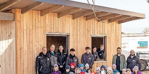 Nagelneu strahlt das holzverkleidete Gebäude mit seinem modernen Pultdach auf dem Gelände der Kindertagesstätte in Schondra mit den Kindern und allen Beteiligten um die Wette: So praxisnah und engagiert kann Ausbildung heute aussehen. Denn was ein Gewinn für die KiTa und die Region ist, hat auch den Auszubildenden der Hanse Haus GmbH viel Spaß gemacht, heißt es in einer Pressemitteilung des Unternehmens.