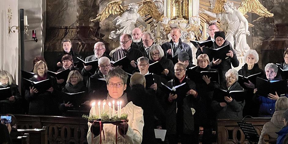 Der zweite schwedisch-finnische Abschnitt begann mit ungewöhnlich dunkler Stimmung des „Drömmarna“ und fand seinen Höhepunkt im „Sankta Lucia“, bei dem in die abgedunkelte, voll besetzte Kirche von einem wandelnden Kerzenkranz in eine besondere Atmosphäre getaucht wurde. Immer wieder konnte auch das Publikum mitsingen, unter anderem „Hört der Engel helle Lieder“ mit dem tollen „Gloria“-Refrain. Ganz beeindruckt und teils zu Tränen gerührt war das Publikum angesichts der tollen Sopranstimme von Iskrena Pavlova bei „Cantique de Noel“, dafür gab es den verdienten intensiven Zwischenapplaus und Standing ovations.
