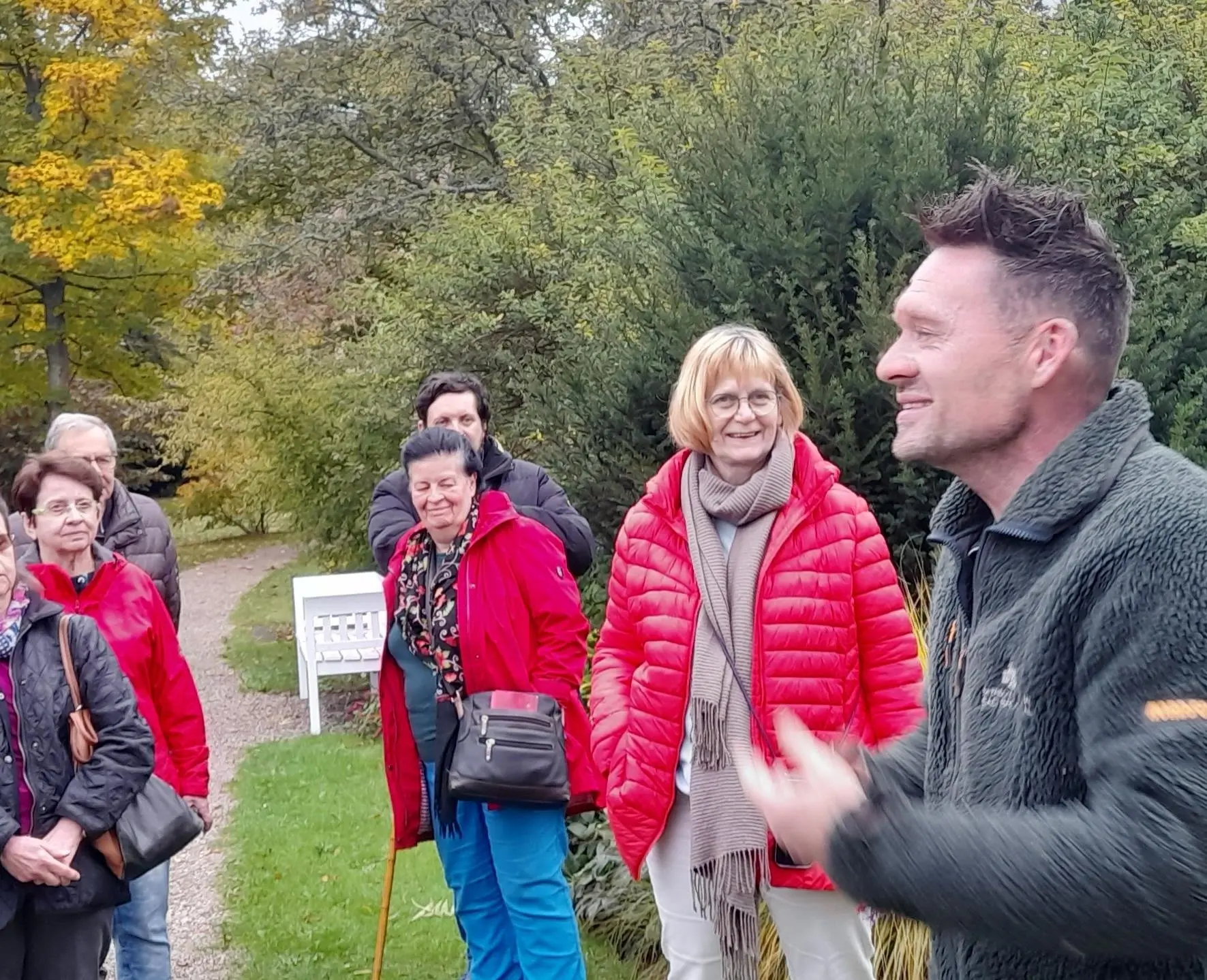 Natur Tipps vom Profi Michael Jakob hat den Teilnehmern der botanischen Führung viele Tipps gegeben. // Claudia Körber TEILEN  vor 11 Stunden Staatsbad Brückenau Michael Jakob, einer der Chefs der Gärtner des Schlossparks im Staatsbad, freute sich über das rege Interesse an seiner botanischen Führung. Zuerst zeigte er eine Reihe von Stauden und Gehölzen, die jetzt im Herbst eine besonders schöne Laubfärbung aufweisen und sich gut zum Binden von Sträußen eignen. Im großen Staudenbeet sowie im Kräuter- und Windgarten ging Jacob mit seinem großen Fachwissen auf viele Fragen der Teilnehmer ein und gab viele praktische Tipps zum Zurückschneiden mehrjähriger Pflanzen und allgemein zur Pflege des eigenen Hausgartens. red