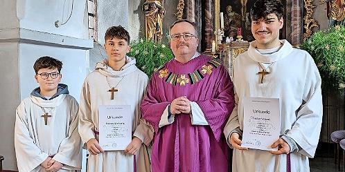Westheim bei Bad Kissingen Westheim hat nur noch einen Ministranten Von links: Vincent Reuter, Hannes Vierheilig, Pfarrer Norbert Wahler, Fabian Volpert. // Karola Volpert TEILEN  06.01.2026 Westheim bei Bad Kissingen