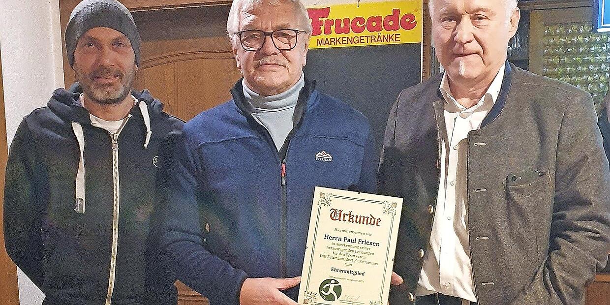 Ein besonderer Höhepunkt der Versammlung war die Ernennung von Paul Friesen zum Ehrenmitglied des Vereins. Damit würdigte die DJK Zettmannsdorf/Oberneuses das langjährige Engagement und die besonderen Verdienste von Paul Friesen, der den Verein über viele Jahre hinweg in verschiedenen Funktionen maßgeblich unterstützt hat.
