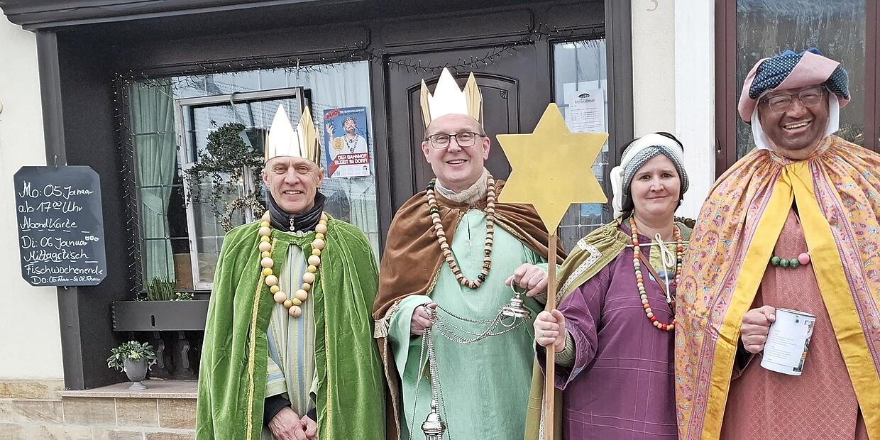 An Dreikönig waren auch in der Stadt Scheßlitz die Heiligen Drei Könige Kaspar, Melchior und Balthasar unterwegs, um Spenden für bedürftige Kinder weltweit zu sammeln. Unter den 15 Gruppen befand sich auch eine Erwachsenengruppe, bestehend aus Ali, Michael, Claudia und Jürgen. Sie wurden zur Verstärkung ausgesandt, weil der Sternsinger-Nachwuchs immer rarer wird. Während die Jungen traditionsgemäß den Segen in die Häuser brachten, gingen die etwas „wirtschaftlicher“ vor als die Jungen, sie klapperten hauptsächlich die Wirtschaften ab und erbaten bei kleineren Beträgen schon mal etwas mehr.