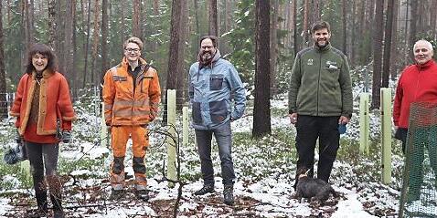 Dank einer Spende können 6500 neue Baumpflanzen eingesetzt werden, berichtete der anwesende Geschäftsführer der Schutzgemeinschaft Deutscher Wald, Simon Tangeding. Wie er freute sich Bürgermeisterin Christine Frieß über das Projekt. Der Naturschutzverband übernimmt die forstfachliche Begleitung, dass standortangepasste und klimawandeltolerante Baumarten nahe der Cube Stores in den Wald gepflanzt werden. Der Erfolg liegt bei derartigen Unternehmungen auch bei der Eigenverantwortung der Waldbesitzer, wie hier der Stadt Burgkunstadt. Dabei sei die Zusammenarbeit aller wichtig, betonte auch Wolfgang Weiß, Förster und Waldpädagoge vom Zuständigen Amt für Ernährung, Landwirtschaft und Forsten in Coburg.
