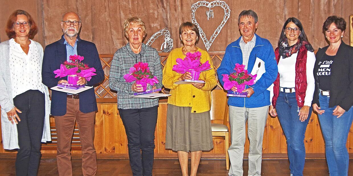 Bei den anschließenden Ehrungen wurde Thomas Siebenhaar für 25-jährige Mitgliedschaft mit der Urkunde in Silber und für 40-jährige Mitgliedschaft Rudolf und Ursula Dittrich, Lieselotte Freitag, Güntheer Kettler und Ingrid Scherbel mit der Ehrennadel in Gold ausgezeichnet.