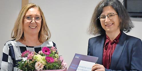 Seniorenzentrum In den Ruhestand getreten Christine Aßhoff (rechts), Abteilungsleiterin Altenhilfe der Diakonie Bamberg-Forchheim, dankte Christine Heublein (links) für 25 Jahre im Dienst der Diakonie und verabschiedete die Einrichtungsleiterin des Memmelsdorfer Seniorenzentrums Seehof-Blick in den Ruhestand. // Diakonie TEILEN  05.03.2025 Memmelsdorf Christine Heub-lein wurde als Einrichtungsleitung des Diakonie-Seniorenzentrums verabschiedet. 25 Jahre war sie für die Diakonie Bamberg-Forchheim tätig; mit dem 1. März verabschiedete sich Christine Heublein in den Ruhestand. Bei einer Feier im Seniorenzentrum Seehof-Blick, das sie seit 2018 leitete, nahmen nicht nur Vertreter der Diakonie Bamberg-Forchheim die Gelegenheit war, ihr ein herzliches Dankeschön für ihr Engagement auszusprechen. Auch Memmelsdorfs Bürgermeister Gerd Schneider und weitere Vertreter der Gemeinde und der Horst-Bieger-Stiftung, der Eigentümergemeinschaft, des benachbarten Betreuten Wohnens und die Bewohner feierten mit der Einrichtungsleiterin ihren Abschied.Mit einer Andacht und Gottes Segen für Christine Heub-lein eröffnete Pfarrer Wolfgang Blöcker die Feier. Christine Aßhoff, Abteilungsleiterin Altenhilfe bei der Diakonie, skizzierte im Anschluss den beruflichen Werdegang: 1999 startete Christine Heublein nach ihrer Ausbildung ihre Karriere als Pflegefachkraft bei der Diakonie im Bamberger Seniorenzentrum Wilhelm Löhe. Mit dem Wechsel nach Memmelsdorf in das Seniorenzentrum Seehof-Blick nahm Christine Heublein die Herausforderung an, ein Pflegeheim als Einrichtungsleitung zu organisieren. Memmelsdorfs Bürgermeister Gerd Schneider schloss sich dem Dank seiner Vorrednerin an. Er präsentierte in seinem Grußwort einige „Insider“ rund um Christine Heublein: „Wie ich erfahren habe, sind Sie eine Spätberufene und haben die Karriere in der Pflege erst als zweiten Beruf gelernt.“ Außerdem erwähnte er ihre Leidenschaft für das Fahrradfahren, die u.a. für das Angebot der Senioren-Rikscha in der Gemeinde mit verantwortlich gewesen sei: „Die Rikscha ist eine Riesenfreude und fördert das Miteinander“, so Bürgermeister Schneider.