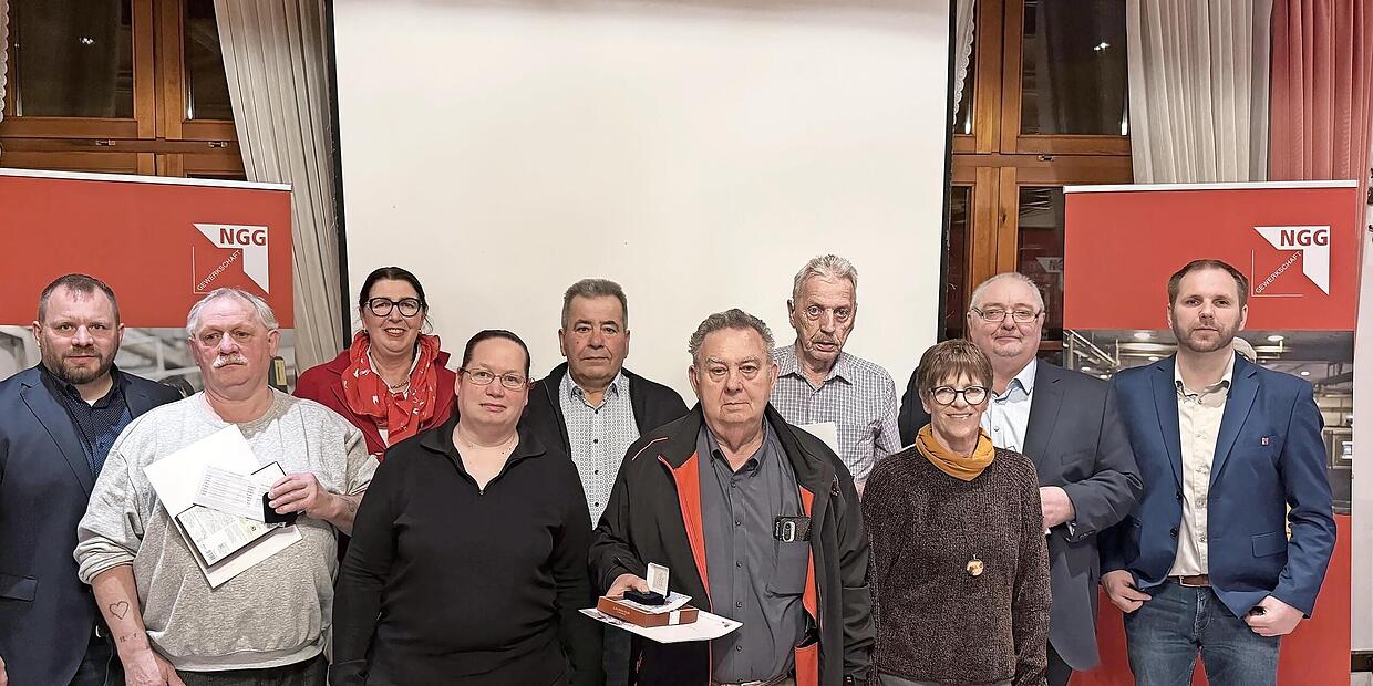 Kürzlich fand die Jahreshauptversammlung der Gewerkschaft Nahrung-Genuss-Gaststätten (NGG) für den Bereich Westoberfranken in Hirschaid statt. Dabei ist es gute Tradition, die Jubilarinnen und Jubilare für ihre langjährige Treue zur Gewerkschaft zu ehren.