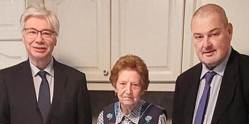 Kemmern Sara Roth ist 90 Jahre alt Die Glückwünsche der Gemeinde Kemmern für Sara Roth überbrachten Bürgermeister Rüdiger Gerst (links) und Zweiter Bürgermeister Volker Pflaum. // Johannes Michel von Johannes Michel TEILEN  vor 21 Stunden Kemmern 90. Geburtstag konnte Sara Roth bei guter Gesundheit in Kemmern begehen. Sara Roth ist am 3. November 1935 in Schönau in Rumänien zur Welt gekommen. Da die Siebenbürger Sachsen zur deutschen Minderheit in Rumänien gehörten, sah sich die Familie in den 80er Jahren gezwungen, ihre Heimat zu verlassen. Ihre Kindheit und Jugend waren durch die Kriegs- und Nachkriegszeit geprägt. So hatte sie von klein auf in der elterlichen Landwirtschaft mitgearbeitet und auch die Versorgung der jüngeren Geschwister übernommen. Hier musste sie die Rolle der Mutter ersetzen, da diese aufgrund der Kriegsverletzung des Vaters für den Unterhalt der Familie sorgen musste.Mit ihrem handwerklichen Geschick hat sie nicht nur für ihre Geschwister viel genäht, sondern begann später auch mit der Wandmalerei und betrieb u. a. Heimarbeit mit Stickdeckenmalerei.Nach einigen Jahren in Hallstadt konnte die Familie im März 1989 in das mit vereinten Kräften in Kemmern gebaute Haus einziehen. Hier wirkte Sara dann als Hausfrau und betreute ihre Enkelin Jessica. Besonderes Augenmerk legte sie dabei auch auf ihren Garten.Aus der Ehe mit ihrem 2022 verstorbenen Ehemann Mathias stammen die beiden Töchter Sara und Malwine, die mit ihren Familien zu den heutigen Gratulanten gehören. Sara Roth kann sich an ihren drei Enkelinnen Jessica, Iris und Sabine sowie an den Urenkeln Alina, Fiona und den Zwillingen Lea und Tim erfreuen, die alle in Kemmern leben. jm