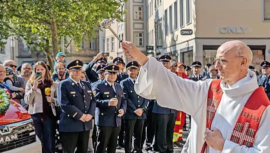 Bamberg Sechs neue Feuerwehrfahrzeuge gesegnet Pfarrer Helmut Hetzel erteilt den kirchlichen Segen. // Stadt Bamberg von Redaktion TEILEN  vor 4 Stunden Bamberg Zahlreiche Angehörige der Feuerwehr, Vertreter der Stadt sowie viele interessierte Passanten hatten sich vor der Kirche St. Martin eingefunden, um an der Segnung von sechs neuen Fahrzeugen der Feuerwehr teilzunehmen, heißt es in einer Pressemitteilung der Stadt. Vor Beginn des Gottesdienstes herrschte demnach reges Treiben am Grünen Markt. Viele Spaziergänger zeigten großes Interesse an den neuen Fahrzeugen, die aufgereiht vor St. Martin standen. Während Pfarrer und Geistlichkeit sich gemeinsam mit den Einsatzkräften versammelten, um feierlich in die Kirche einzuziehen, machten die Bürger bereits fleißig Bilder.Im Gottesdienst dankte Pfarrer Helmut Hetzel allen Anwesenden – von Bürgermeister Jonas Glüsenkamp sowie weiteren Mitgliedern des Bamberger Stadtrats über Feuerwehrleute bis hin zu den Bürgern – für ihr Kommen. Er hob die Bedeutung der neuen Fahrzeuge für die Sicherheit der Stadt hervor und betonte den Schutz, den die Feuerwehr der Bevölkerung bietet. Symbolisch für die Fahrzeuge stand eine Spielzeug-Drehleiter vor dem Altar. Deren kleiner Besitzer freute sich sehr, dass diese ebenfalls den kirchlichen Segen erhalten sollte.Nach dem Gottesdienst begab sich die Gemeinde vor die Kirche zur eigentlichen Fahrzeugweihe. Hier segnete Pfarrer Hetzel sechs neue Einsatzfahrzeuge.Anschließend sprachen Bürgermeister Glüsenkamp, Stadtbrandrat Florian Kaiser und Amtsleiter Christian Seitz zu den Anwesenden. Sie würdigten das Engagement der Einsatzkräfte und die Bedeutung der neuen Fahrzeuge für die Sicherheit in Bamberg und über die Stadtgrenzen hinaus.Auch Johannes Schuberth, Kommandant der Freiwilligen Feuerwehr Buttenheim, der Patenwehr von Bamberg, beglückwünschte die Einsatzkräfte in Bamberg. Beim gemütlichen Beisammensein im Hinterhof der Martinskirche mit Grillgut und Getränken konnten die neuen Fahrzeuge noch besichtigt werden. red