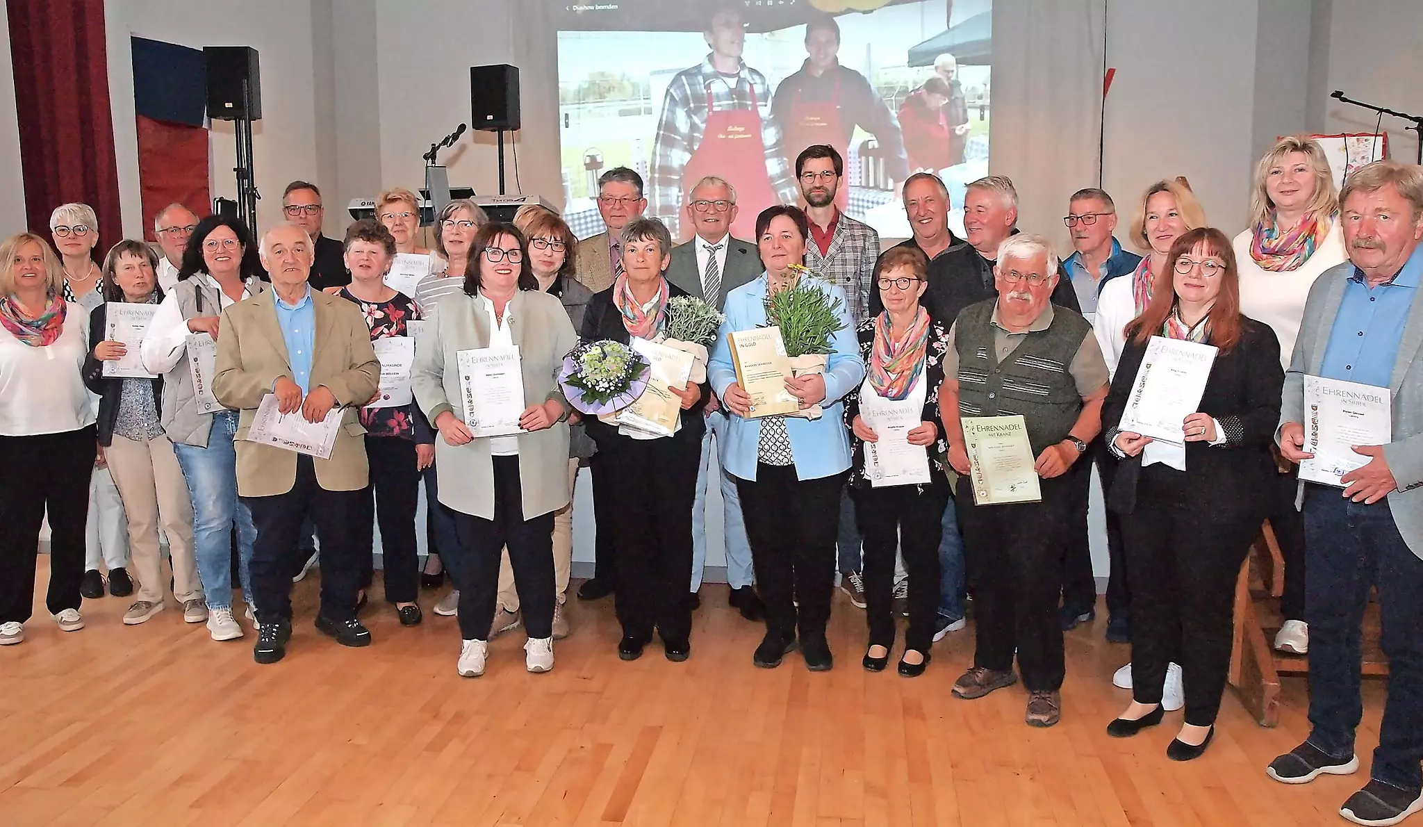 Obst- und Gartenbauverein Zum 90. Geburtstag ein Fest für Gemeinschaft und Natur Unser Bild zeigt die Geehrten des Obst- und Gartenbauvereins Lisberg . // Hans Stappenbacher TEILEN  05.07.2025 Lisberg Der Obst- und Gartenbauverein Lisberg hat mit großem Stolz und Freude sein 90-jähriges Bestehen gefeiert, wie es in einer Pressemitteilung heißt. Den Auftakt bildete ein festlicher Wortgottesdienst, der von Pfarrer Sebastian Schiller gestaltet wurde. Im Anschluss wurde der verstorbenen Mitglieder der vergangenen zehn Jahre in einer würdevollen Gedenkfeier gedacht. Laut Pressemeldung war dies ein stiller Moment der Gemeinschaft und Verbundenheit. Die Feierlichkeiten wurden von zahlreichen Gästen aus Politik, Kirche sowie den benachbarten und ortsansässigen Vereinen begleitet. In ihren Grußworten würdigten Bürgermeister Michael Bergrab, Landrat Johann Kalb und Schirmherr Uwe Hoff die besondere Bedeutung des Vereins. Bürgermeister Bergrab hob hervor, wie wichtig der Verein für die Lebensqualität und das Ortsbild in Lisberg sei. Landrat Kalb würdigte das generationenübergreifende Ehrenamt als ein besonders lebendiges Zeichen von Heimatpflege. Uwe Hoff, Schirmherr und langjähriger Kreisfachberater, lobte vor allem die nachhaltige Ausrichtung des Vereins sowie dessen engagierte Jugendarbeit.Ein weiterer Höhepunkt der Feier war die Ehrung langjähriger Mitglieder. Insgesamt 34 Personen wurden für ihre 25-jährige Vereinszugehörigkeit ausgezeichnet, während drei Mitglieder für 40 Jahre Treue geehrt wurden. Michael Benkert, seit mittlerweile 50 Jahren Teil des Vereins, erhielt die Ehrennadel mit Kranz – eine besondere Auszeichnung, die seine entscheidende Rolle beim Wiederaufleben des Vereins Ende der 1980er Jahre würdigt. Auch Regina Riemer und Barbara Schneider, die beide seit 25 Jahren in der Vorstand tätig sind, wurden mit der Ehrennadel in Gold ausgezeichnet.Die Jugendgruppe „Lisberger Burgäpfela“ erhielt ebenfalls große Aufmerksamkeit. Kinder, die zehn Jahre in der Gruppe aktiv waren, sowie die Gründungsmitglieder wurden speziell geehrt. Als zusätzliche Anerkennung erhielten alle aktuell aktiven Kinder einen Gutschein für ein Eis. Ein Rückblick auf die Vereinsgeschichte bot den Gästen einen Einblick in die Entwicklung seit der Gründung im Jahr 1934. Der Verein, ursprünglich als Obstbaumverein ins Leben gerufen, hat sich über die Jahre immer wieder neu ausgerichtet. Zu den Projekten zählt unter anderem der Bau des Brunnens am Feuerwehrhaus im Jahr 2001 oder die Teilnahme am Kreisapfelmarkt. Auch ökologische Initiativen spielen seit jeher eine zentrale Rolle: So wurden im Jahr 2016 insgesamt 57 Obstbäume auf dem Judenacker, einem Gemeindegrundstück, gepflanzt.Eine begleitende Diashow mit Bildern aus mehreren Jahrzehnten gab den Gästen weitere Einblicke in die reiche Historie und lebendige Gegenwart des Vereins. Die Jugendgruppe „Lisberger Burgäpfela“, die 2014 gegründet wurde, trägt ebenfalls maßgeblich zum Erfolg der Gemeinschaft bei. Sie wurde unter anderem mit dem Dorfökologiepreis ausgezeichnet und führt den zukunftsorientierten Kurs des Vereins mit Aktionen wie Apfelsaftpressen, Kürbisschnitzen und Naturerlebnisprojekten fort.Mit der Feier hat der Obst- und Gartenbauverein Lisberg einmal mehr unter Beweis gestellt, dass er ein zentraler Bestandteil der Dorfgemeinschaft ist – tief verwurzelt in der Tradition, aktiv in der Gegenwart und offen für die Herausforderungen der Zukunft, heißt es in der Pressemitteilung. Die anwesenden Mitglieder des Gremiums zeigten sich erfreut über die große Resonanz und die engagierte Teilnahme an diesem besonderen Fest. red