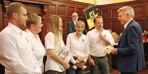 Viele Mitglieder übernähmen konkrete Aufgaben, und „keiner steht hier nur auf dem Papier“, lobte Bürgermeister Heiko Voigt. Der Heimatverein sorge mit kontinuierlichem Einsatz und Zusammenhalt für ein lebendiges, engagiertes Oberlind. Als Ergebnis seiner Arbeit konnte der Vorstand mit André Möckl, Siri Schnelle, Heidi Gallert, Mandy Köpper und Steffen Beck dem Stadtrat seine druckfrische Festschrift präsentieren und überreichte Exemplare für das Stadtarchiv Sonneberg.