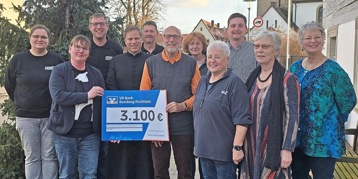 Die Spendenschecks nahmen Annekathrin Schreiner von der Lebenshilfe Forchheim, Christine Schneider-Knapp für den Tierschutzverein Forchheim, Luise Müller und Petra Zehe für die Christliche Arbeiterhilfe (CAH) im KAB-Diözesanverband Bamberg sowie Pfarrer Matthias Steffel von der Pfarrei Mariä Himmelfahrt Pautzfeld entgegen.