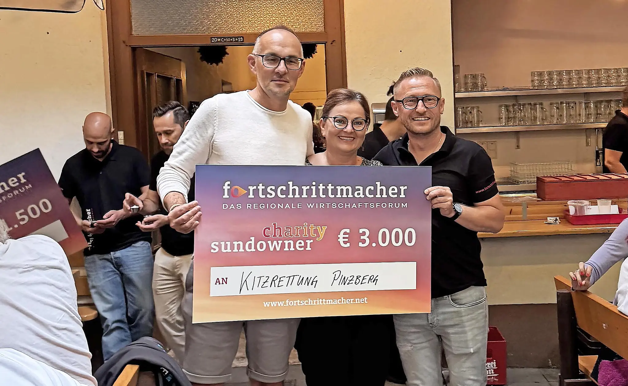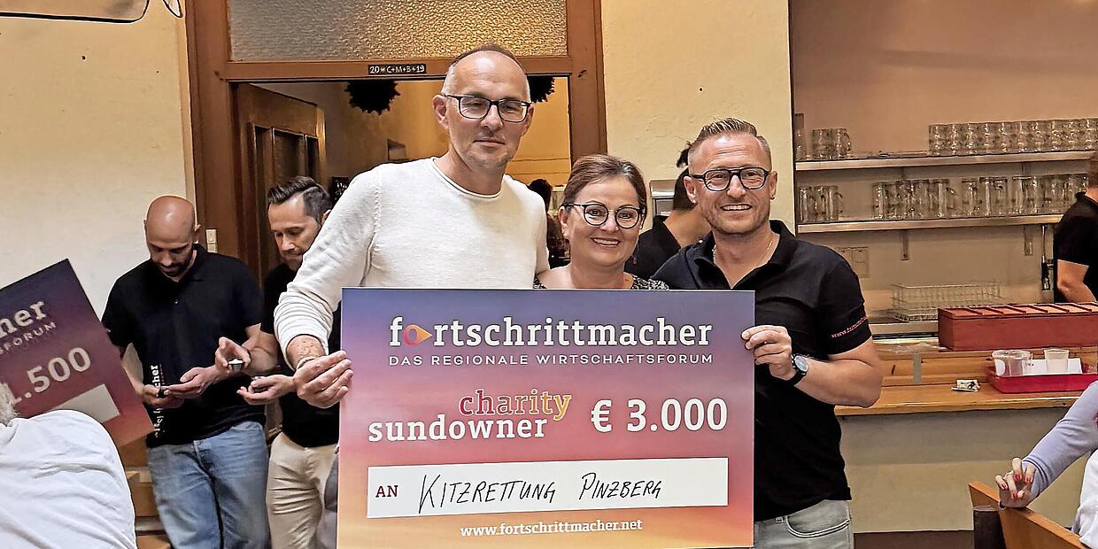 Forchheim 5000 Euro für Vereine aus dem Landkreis Die Siegerehrung für den ersten Platz: Sonja Kreller und Marc Brütting von der Kitzrettung freuen sich gemeinsam mit dem Vorsitzenden der Fortschrittmacher, Daniel Eichinger, über den Sieg und die 3000-Euro-Spende. // Patrick Bindl von Redaktion TEILEN  16.08.2025 Forchheim Nach der Schlachtschüssel am Kellerwald Forchheim wurde ein „Sundowner-Charity-Event“ veranstaltet, bei dem das regionale Unternehmernetzwerk Fortschrittmacher 5000 Euro an drei gemeinnützige Organisationen gespendet hat. Der „Sundowner“ auf dem Winterbauer-Keller setzte ein starkes Zeichen für regionalen Zusammenhalt und soziales Engagement. In sommerlicher Atmosphäre erlebten die Gäste einen Abend, der Vereine aus dem Landkreis in den Mittelpunkt stellte.Vier Wochen lang konnten Bürgerinnen und Bürger für ihren Verein abstimmen. Rund 1500 Stimmen gingen für 15 Vereine aus dem Landkreis Forchheim ein – ein enges Rennen bis zuletzt. Am Abend selbst wurden zusätzlich Wahlzettel ausgefüllt. Jede Stimme vor Ort zählte doppelt zu den Online-Ergebnissen, bevor die Spendenschecks übergeben wurden.3. Platz: Arbeiter-Samariter-Bund (ASB) Forchheim 500 Euro. Die Spende unterstützt die neue Psychosoziale Akuthilfe (PSAH). Das neue Team unterstützt Menschen nach traumatischen Ereignissen und befindet sich aktuell in der Mentoringphase mit dem ASB München, um erste Einsätze professionell zu begleiten.2. Platz: Deutsche Lebens-Rettungs-Gesellschaft (DLRG) Forchheim 1500 Euro. Die Ortsgruppe verwendet die Mittel für ihre Arbeit in der Wasserrettung, der Ausbildung von Rettungsschwimmern und für den Katastrophenschutz. Damit leistet sie einen zentralen Beitrag zur Sicherheit in der gesamten Region.1. Platz: Kitzrettung Pinzberg 3000 Euro. Mit Drohnen und Wärmebildkameras rettet der Verein Rehkitze vor der Mahd auf Wiesen und Feldern und schützt damit Wildtiere wie auch Landwirte vor schweren Unfällen. Die Spende unterstützt Ausrüstung und Einsätze in der kommenden Saison. Die Fortschrittmacher sind ein 2018 gegründetes Netzwerk regionaler Unternehmen aus Forchheim und Umgebung. Sie verbinden nach eigenen Angaben wirtschaftliche Stärke mit gesellschaftlichem Engagement und setzen sich für Projekte ein, die die Region fördern. Mit Veranstaltungen wie dem „Charity-Sundowner“ schaffe der Verein Plattformen, die Vereine unterstützten und ehrenamtliches Engagement sichtbar machten. „Wir wollen zeigen, dass Unternehmen gemeinsam mehr bewegen können – nicht nur für die Wirtschaft, sondern auch für die Menschen in unserer Region“, so Daniel Eichinger, Vorsitzender der Fortschrittmacher. Wer sich dafür näher interessiert, ist herzlich eingeladen, bei einem der zweiwöchentlichen Treffen vorbeizuschauen. red