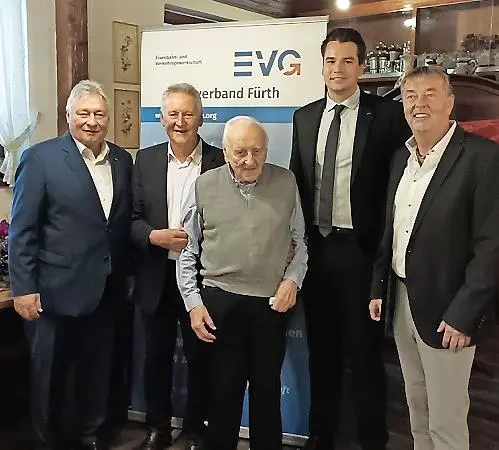 Forchheim 80 Jahre Mitglied in der Eisenbahner-Gewerkschaft Von links: Martin Burkert, Fürths OB Thomas Jung, Günter Klar, Mattias Birkmann, Klaus Obst. // Klaus Obst von Redaktion TEILEN  vor 2 Stunden Forchheim Der bald 98-jährige Günter Klar ist Eisenbahner gewesen, bis zu seinem Ruhestand verantwortlich für große Umbauten. Und immer noch ist er seiner Eisenbahn- und Verkehrsgewerkschaft (EVG) treu.Mit weiteren Mitgliedern wurde er in einem würdigen Rahmen geehrt. Ortsverbandsvorsitzender Klaus Obst ging in seiner Eröffnungsrede darauf ein: „Bei Wind und Wetter und im Schichtdienst wart ihr für die Bahn und den Kunden unterwegs und habt euch als Techniker, Fahrdienstleiter, Brückenbauer, IT-Spezialist, Zugführer und Kontroller eingebracht in die große Eisenbahnerfamilie.“ Man habe den Bundesvorstand Martin Burkart für die Festrede gewinnen können. Bahnvorstände wollten im ICE Tempo abbauen, doch Burkart mit seinem Team konnte hier auch mal die Signale auf Rot stellen. Wie man die letzten Wochen auch gesehen hat, in der Führungsetage des Bahnkonzerns. Von der EVG-Geschäftsstelle Nürnberg war Matthias Birkmann dabei. Er konnte mit seinem Beitrag zu regionalen Geschehnissen, barrierefreien Zugängen, Pünktlichkeit und der Diskussionen zum Ausbau der Strecken auch den anwesenden Oberbürgermeister der Stadt Fürth, Thomas Jung, einbeziehen.Im Anschluss wurden die Jubilare für ihre Treue zur EVG mit Ehrenurkunde, Präsent und Blumengebinde geehrt. Für 80 Jahre wurden geehrt Günter Klar und Anton Stähr; letzterer konnte aus gesundheitlichen Gründen nicht teilnehmen. Für 70 Jahre: Paul Pöhlmann und Georg Pieger. Für 60 Jahre: Klaus Wollny, Richard Ketscher und Hermann Ittner. Für 50 Jahre: Karl Heinz Welker und Stefan Schönbach.Bei einem gemeinsamen Mittagessen in der Gaststätte Stadtwappen wurden dann schöne Gespräche geführt und Erinnerungen ausgetauscht. Obst dankte am Ende seinen Mitgliedern in seiner Vorstandschaft. Klaus Obst, Eisenbahn- und Verkehrsgewerkschaft EVG