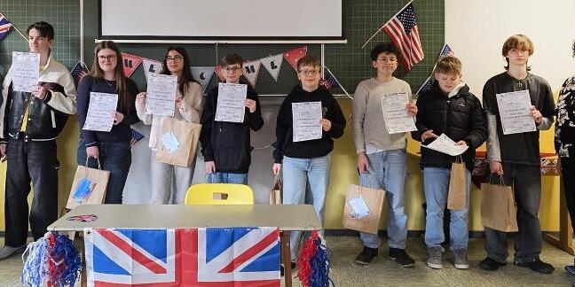 Hinter dem Erstplatzierten Nick Zeitler (Eggolsheim) sicherten sich Khadija Khudiyeva (Ritter-von-Traitteur-Mittelschule Forchheim) und Vedad Becarevic (Adalbert-Stifter-Mittelschule Forchheim) die Plätze zwei und drei. Als Belohnung gab es neben Urkunden auch „Goodybags“ mit britischen und amerikanischen Snacks sowie Buchpreise und Gutscheine.