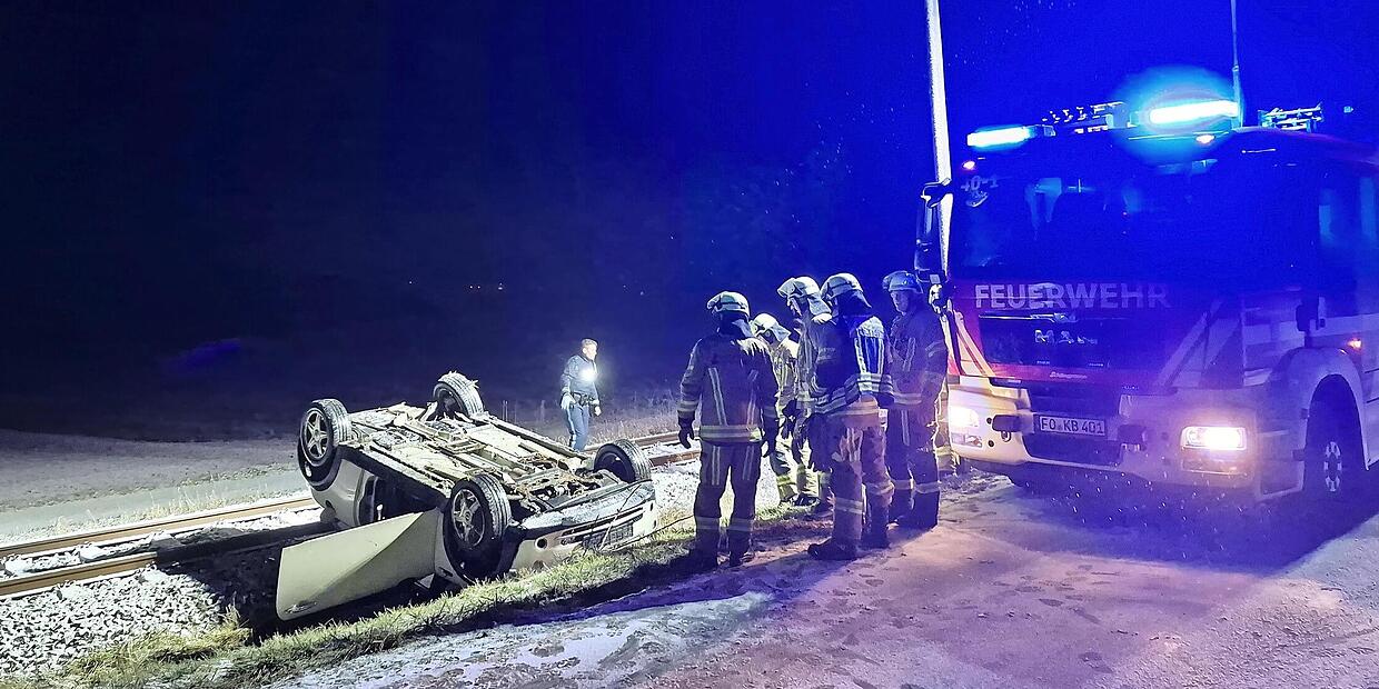 Da das Auto in der Nähe der Gleise gelandet war, musste auch der Bahnverkehr gestoppt werden. Nicht angepasste Geschwindigkeit und Sommerreifen führten laut Bericht der Polizeiinspektion Ebermannstadt zum Unfallgeschehen. Alarm am späten Montagabend: Gegen 23.20 Uhr wurden die Ehrenamtlichen der Kirchehrenbacher Feuerwehr zu dem Verkehrsunfall alarmiert. Laut Bericht der Feuerwehr konnte sich der Autofahrer mit Ersthelfern selbst befreien und wurde vom Rettungsdienst versorgt.