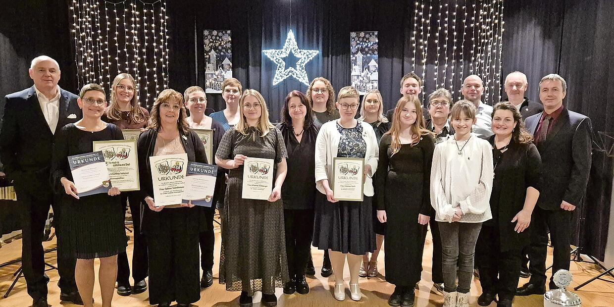 Die Ehrungen nahmen Bernd Werner und Manuel Gumpert gemeinsam mit Andrea Echaniz-Gerhard vom Nordbayerischen Musikbund vor. Für zehn Jahre wurden Vanessa Barth, Susanne Bravo, Maximilian Gumpert, Johanna Schmitt und Amelie Werner mit Bronze geehrt. Silber erhielten Johanna Wildanger und Jasmin Kneuer.