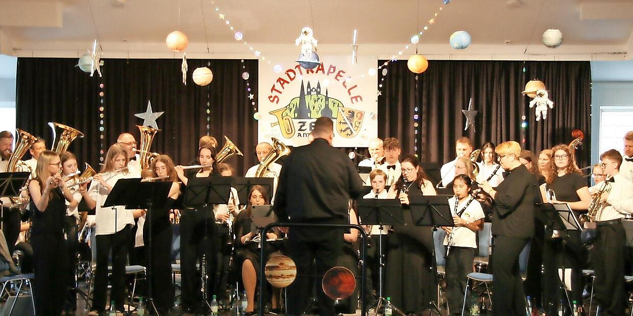 Im passend dekorierten Rudolf-Winkler-Haus haben der neue Dirigent Johannes Oppel und seine Musikerinnen und Musiker der Stadtkapelle Zeil abwechslungsreiche musikalische Unterhaltung zum Thema „Stars“ präsentiert. Es ging dabei jedoch nicht um die Stars aus Film, Funk, Fernsehen und Internet, sondern um alles, was mit Sternen, Planeten, Weltraum und dem Himmel zu tun hat.