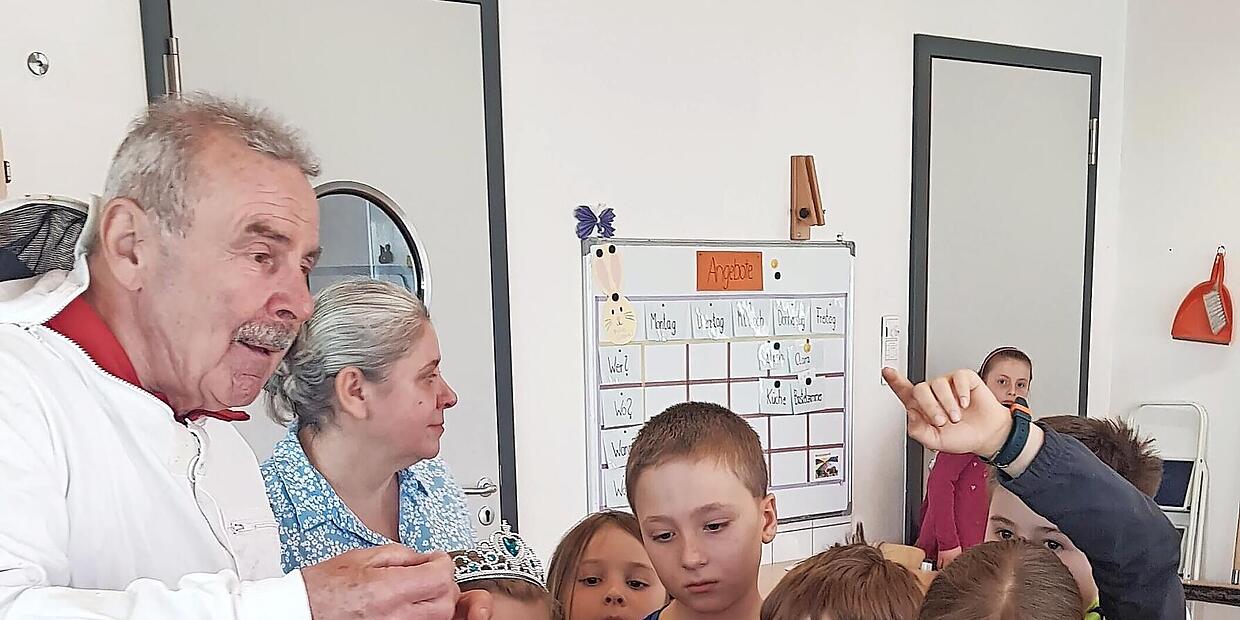 In der zweiten Woche drehte sich alles rund um das Thema Bienen. Die Kinder konnten ihrer Kreativität freien Lauf lassen, viel Neues entdecken und erlebten spannende Aktivitäten. Ein Highlight war der Besuch eines Imkers: Dabei erhielten die Kinder faszinierende Einblicke in das Leben der Bienen und die vielfältige Arbeit des Imkers.