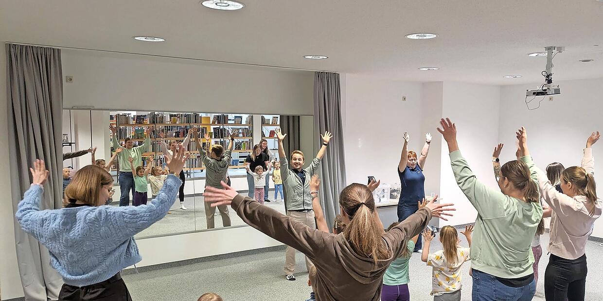 Uta Möller-Reuß und Yannick Reuß von der Ballettschule On Point gestalteten das Programm und vermittelten den Kindern und Eltern auf lebendige Weise die Freude an Bewegung. Mit abwechslungsreichen Übungen und musikalischen Impulsen wurden die Kinder dazu angeregt, ihren eigenen Körper bewusst wahrzunehmen, sich im Rhythmus der Musik zu bewegen und aufmerksam auf unterschiedliche Töne zu reagieren.