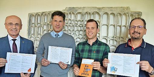 Katastrophenschutz Landratsamt startet Kampagne zur Eigenvorsorge Landrat Wilhelm Schneider (links), Werner Mahr, Leiter des Fachbereichs Öffentliche Sicherheit und Ordnung (rechts), Andre Kuhn, Sachbearbeiter Katastrophenschutz (2. von rechts) sowie Jürgen Wolf, Leiter der Führungsgruppe Katastrophenschutz, zum Start der Informationskampagne. // Moni Göhr/Landratsamt Haßberge TEILEN  vor 9 Stunden LKR Haßberge „Was tun, wenn …?“Unsere Gesellschaft steht immer wieder vor Herausforderungen – seien es Naturereignisse wie Sturm, Hochwasser oder langanhaltender Stromausfall, technische Störungen oder auch globale Krisen, schreibt das Landratsamt in einer Pressemitteilung. In solchen Situationen sei schnelle Hilfe gefragt. Der Katastrophenschutz, die Einsatzkräfte der Freiwilligen Feuerwehren und lokale Hilfsorganisationen leisteten Tag für Tag Großartiges. Dank ihres Einsatzes gingen die meisten Ereignisse glimpflich aus. Doch eines sei ebenso entscheidend: die eigene Vorsorge.Damit Bürgerinnen und Bürger wissen, welche Ereignisse auf sie zukommen können, wie sie sich selbst vor diesen schützen können und wie sie sich im Ernstfall verhalten sollten, hat das Landratsamt Haßberge das Projekt „Was tun, wenn…?“ ins Leben gerufen. In Zusammenarbeit mit den Ortsverbänden der lokalen Hilfsorganisationen und dem Kreisfeuerwehrverband Haßberge informiert das Landratsamt in den kommenden Monaten über Hintergründe von Notsituationen und Handlungsmöglichkeiten zur Vorsorge sowie während beziehungsweise nach dem Ereignis. Gemeinsam mit den 26 Kommunen soll die Bevölkerung sensibilisiert werden, wie man sich am besten auf die verschiedensten Krisen und Katastrophen vorbereiten kann. „Jeder von uns kann und sollte dazu beitragen, im Notfall handlungsfähig zu bleiben. Wer vorbereitet ist, schützt nicht nur sich selbst, sondern entlastet auch die Einsatzkräfte und hilft die Gemeinschaft insgesamt widerstandsfähiger zu machen“, schreibt Landrat Wilhelm Schneider.
