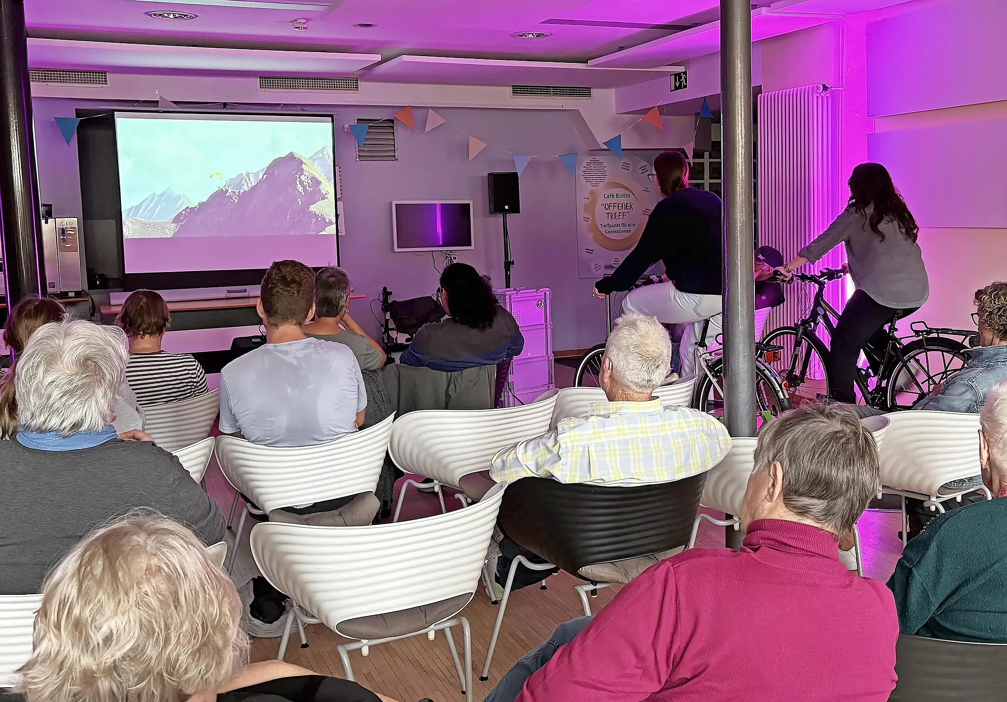 Haßfurt Nachhaltiges Filmerlebnis Das Fahrradkino sorgte für ein nachhaltiges Filmerlebnis mit Spaß und Bewegung – und förderte das praktische Verständnis von Strom und Energie. // Sonja Gerstenkorn von Redaktion TEILEN  27.10.2025 Haßfurt Im Rahmen der Erlebniswochen Zukunftsklima war das Fahrradkino von Thomas Beer im Landkreis Haßberge zu Gast. Das teilt das Landratsamt Haßberge in einer Pressemeldung mit. Im Mehrgenerationenhaus in Haßfurt sowie in der 7. und 8. Jahrgangsstufe der Wallburg-Realschule in Eltmann wurden eindrucksvolle Naturdokumentationen gezeigt, die die Vielfalt und Schönheit des Planeten Erde demonstrierten und gleichzeitig verdeutlichten, dass genau diese durch Klimawandel und menschliches Handeln stark gefährdet sind. Jeweils zwei bis drei Personen mussten ordentlich in die Pedale treten, um den benötigten Strom für ein echtes Kinoerlebnis zu produzieren. Den Beteiligten wurde schnell klar, dass dazu viel Energie notwendig ist. Nach rund zehn Minuten wurden die Plätze auf den Fahrrädern getauscht, damit möglichst viele Interessierte das Fahrradkino ausprobieren konnten.Sowohl im Mehrgenerationenhaus als auch in der Realschule fanden sich zahlreiche Freiwillige, die mit reiner Muskelkraft für die nötige Akkuladung sorgten. So konnte sichergestellt werden, dass auch während der Radler-Wechsel der Film weiterlief und das Kinoerlebnis nicht geschmälert wurde. Das Fahrradkino zeigte ganz praktisch, was es bedeutet, Strom und Energie zu produzieren. Die fleißigen Radfahrerinnen und Radfahrer lieferten durch ihren Einsatz nicht nur Ökostrom für das Filmerlebnis, sondern taten gleichzeitig etwas für ihre Gesundheit. Mit dem Fahrradkino wurde somit für Spaß und ausreichend Bewegung gesorgt und darüber hinaus aufgezeigt, dass es sich lohnt, sich für den Erhalt unseres Planeten in seiner Vielfalt einzusetzen. red