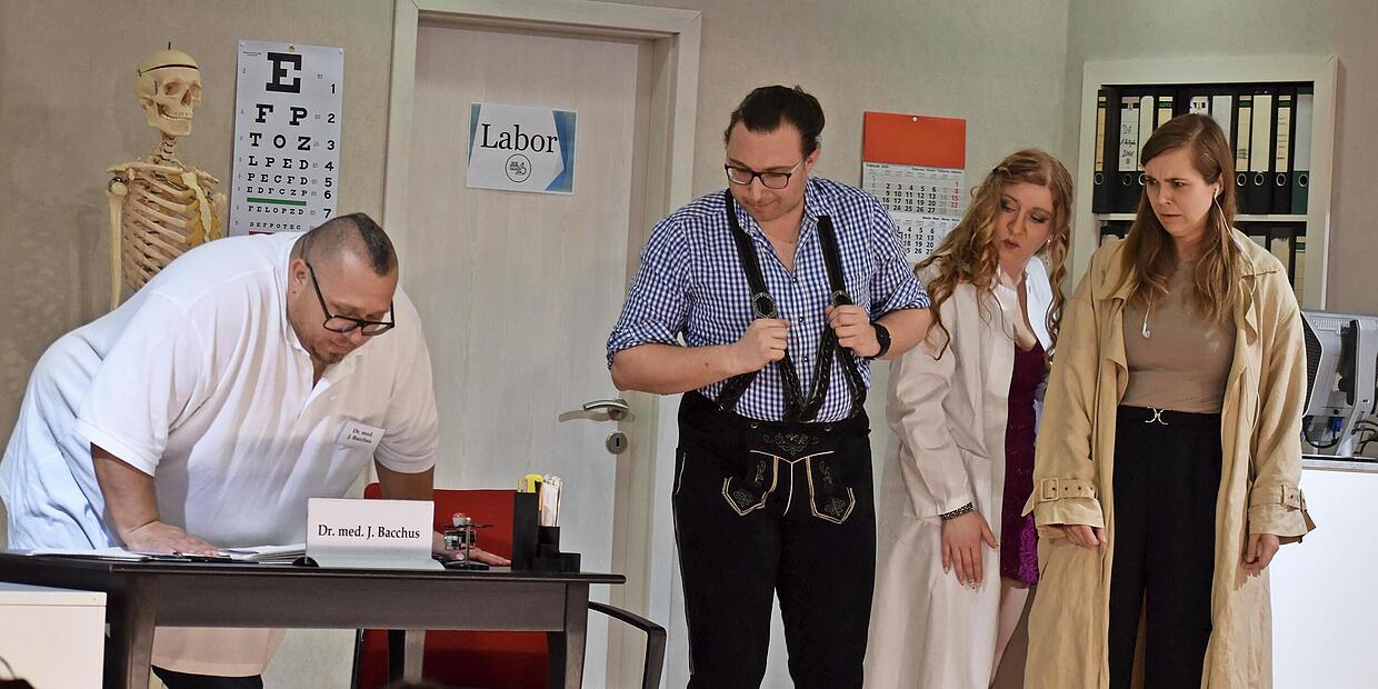 Auch die unbeholfene Bauerstochter Chantal Bollermann (Kerstin Heusinger), ihr Bruder Bodo (Thorsten Hufnagel) und Vater Schorsch (Wilfried Autsch) geben sich in der Praxis von Dr. Bacchus die Klinke in die Hand und sorgen für zusätzlichen Wirbel. Die liebestolle Dauerpatientin Wilma Öfter (Sonja Kaffer) macht ihrem Namen alle Ehre: Eigentlich sucht sie Hilfe wegen der Probleme ihres Mannes – was mehrfach zu peinlich-komischen Situationen führt.