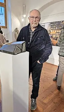 ausstellung Roter Teppich für die moderne Kunst: diesmal zum Thema „Nacht“ Jügen Hochmuth vor einer seiner Skulpturen. // TEILEN  vor 10 Stunden Knetzgau Die Galerie im Saal öffnete mit einer sehenswerten Kunstausstellung wieder ihre Pforten. Mit Bildern von Jürgen Hochmuth und Werner Tögel sowie Skulpturen von Jürgen Hochmuth zum Thema „Nacht“ ist es den Galeristen Eleonore Schmidts-Stumpf und Egon Stumpf erneut gelungen, der modernen Kunst einen roten Teppich auszulegen. Und die Kunstfamilie aus der Region kam zahlreich. Jürgen Hochmuth konzentriert sich auf die Dunkelheit der Nacht, die er mit grauen Farbabstufungen, vermengt mit dunklen Grüntönen und gelegentlichen blauen Einschüben ausdrückt, und immer wieder taucht ein letztes Lebenszeichen als roter Farbfleck auf.Er beschäftigt sich seit mehreren Jahrzehnten mit dem Thema Haus und konnte in dieser Ausstellung einen Überblick über sein künstlerisches Tun der vergangenen 20 Jahre einbringen. Der Betrachter bekommt dadurch einen Überblick und ist in der Lage, einen Entwicklungsstrang herauszufiltern.Werner Tögel besticht erneut mit seinem fesselnden Spiel zwischen realer Wiedergabe und abstrakter Pointierung in seinen Stadtimpressionen. Die blendenden Lichter in den Hauptstraßen der Metropolen NY und London, aber auch Straßenzüge aus Schweinfurt und die Reflexionen in den nassen Pflastern und auf den polierten Autolacken spielen ein flirrendes Lichterspektakel, die die Nacht zum Tag machen.„Wir suchen heute nicht mehr die Besinnlichkeit und Ruhe der Nacht, wie sie Rilke in seinen Gedichten zum Ausdruck bringt, sondern fliehen aus der Hektik des Tages in die überblendete Hektik der Nacht. Wir entkommen nicht mehr dem Getöse unserer Sinne (Rilke), sondern sind gefangen in der unausweichlichen Oberfläche der erleuchteten Schaufenster, der Fernseher und der Handys. Wir genießen all diese Spektakel, und wenn die Nacht immer ein Synonym für den Tod war, so können wir uns die Illusion gönnen, diesem zu entkommen.“ Das sind, so die Galeristen, die Gedanken hinter den gezeigten Werken. „Alles in allem eine Kunstschau, die nachdenklich machen kann, aber auch höchsten künstlerischen Genuss durch die ästhetische Präsentation bietet.“Als Highlight trat bei der Vernissage die Gruppe „Staircaseblues“ mit Ute Jeutter und Hayko Spittel aus Frankfurt auf und fesselte die Besucher mit ausdrucksstarkem Blues. Die Besucher dankten dem Duo mit lang anhaltendem Applaus. red Werner Tögel an einem Nachtbild. // Eleonore Schmidts-Stumpf