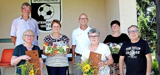 Vereinsleben Viele Veranstaltungen fielen bei den Sportfreunden aus, der Ehrungstag fand aber statt Die ausgezeichneten Vereinsfunktionäre mit Reinhold Heilmann vom BLSV-Kreis Haßberge (rechts) und Zweitem Bürgermeister Andreas Hoch (hintere Reihe links) // Diese Frauen und Männer halten ihrem Verein schon seit 40 oder 50 Jahren die Treue. Bei einem besonderen Ehrungstag erhielten sie ihre Auszeichnungen vom Verein. // Günther Geiling Seit über 25 Jahren arbeiten sie in der Küche (von links): Christiane Rüttinger, Maritta Virnekäs, Hilde Virnekäs und Birgit Hofmann; mit Martin Tully (rechts), Günther Jackl und Rudi Fuchs (links). // von Günther Geiling TEILEN  16.08.2021 Steinbach Für die Sportfreunde Steinbach begann der Tag der Ehrungen mit einem Festgottesdienst zusammen mit der Kirchengemeinde. Ein gemeinsames Mittagessen war Anlass für die „Sonderehrung 25 Jahre Sportheimdienst“ für vier Frauen, die im Sportheim ihren Dienst tun und dabei vor allem immer wieder ihre Kochkünste unter Beweis stellen. Ehrenamtsbeauftragter Rudi Fuchs dankte Hilde Virnekäs, Birgit Hofmann, Christiane Rüttinger und Maritta Virnekäs für die wichtige Arbeit in der Küche. Stellvertretender Bürgermeister Andreas Hoch überbrachte die Glückwünsche der Gemeinde Ebelsbach. Lange seien ja keine Feiern und Feste möglich gewesen, und deswegen sei man froh, dass mit dieser Feier auch wieder ein Stück Normalität einkehre und Mitgliedern für ihr langjähriges Engagement Dank und Anerkennung ausgesprochen würden. „Die Vereine sind es, die unser Gemeinschaftsleben lebendig und am Laufen halten“, meinte er und verglich engagierte Mitglieder mit den Zahnrädern eines Getriebes. Die Jubilare dürften stolz auf ihren Verein sein und junge Mitglieder sollten sich die Geehrten als Vorbild nehmen.Für den BLSV-Sportkreis Haßberge überbrachte Reinhold Heilmann Glückwünsche. Zusammen mit dem Ehrenamtsbeauftragten Rudi Fuchs zeichnete Sportfreunde-Vorstandsmitglied und BLSV-Bezirksvorsitzender Günther Jackl Vereinsfunktionäre aus. Eine Sonderehrung des Bayerischen Fußballverbandes erhielten Günther Hofmann, Horst Tully, Herbert Virnekäs und Erhart Virnekäs, teilweise seit bis zu 30 Jahren im Vorstand tätig. Dafür erhielten sie das Verbandsehrenzeichen in Gold. Viele Vorstandsmitglieder konnten aber auch eine Sonderehrung des „Bayerischen Landessportverbandes“ für langjährige Arbeit in Führungspositionen entgegennehmen. Allen voran war dies Martin Tully, seit 22 Jahren „der Kopf des Vereins“, wie es bei der Ehrung hieß. Tully war Vorsitzender von 1998 bis 2011 und gehört dem Vorstandsteam weiterhin als „Sportvorstand“ an. Er erhielt die Auszeichnung „Silber mit Gold“. Die Auszeichnung in Silber erhielten Andreas Hückmann (Platzwart seit 2005 und Vorstand Anlagen und Gebäude seit 2015), Oliver Virnekäs (Vorstand wirtschaftlicher Bereich von 2011 bis 2015 und Vorstand Finanzen seit 2015), Marco Rüttinger (Vereinsdiener seit 2005 und Vorsitzender Förderverein seit 2015). Mit „Bronze“ wurden ausgezeichnet: Johannes Kremer (Vorstand wirtschaftlicher Bereich seit 2015), Hubert Hückmann (Spielleiter 1. Mannschaft) und der „dreifache Meistertrainer“ Stefan Seufert, der auch seit 2013 dem Vergnügungsausschuss angehört und Kassier des Fördervereins ist. Auch zahlreiche Mitglieder erhielten für ihre jahrzehntelange Treue Urkunden überreicht. gg