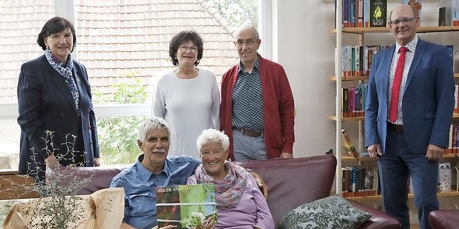 Seit über einem Jahrzehnt ist das Ehepaar Karin und Bernd Kähne (vorne) aus Bad Bramstedt regelmäßig in Zeil zu Gast. Mit im Bild (hinten, von links): Tourismusbeauftragte Beate Reinhardt, Dorothea Dohnke, Lebensgefährtin von Gastgeber Rudi Mahr, und Bürgermeister Thomas Stadelmann.