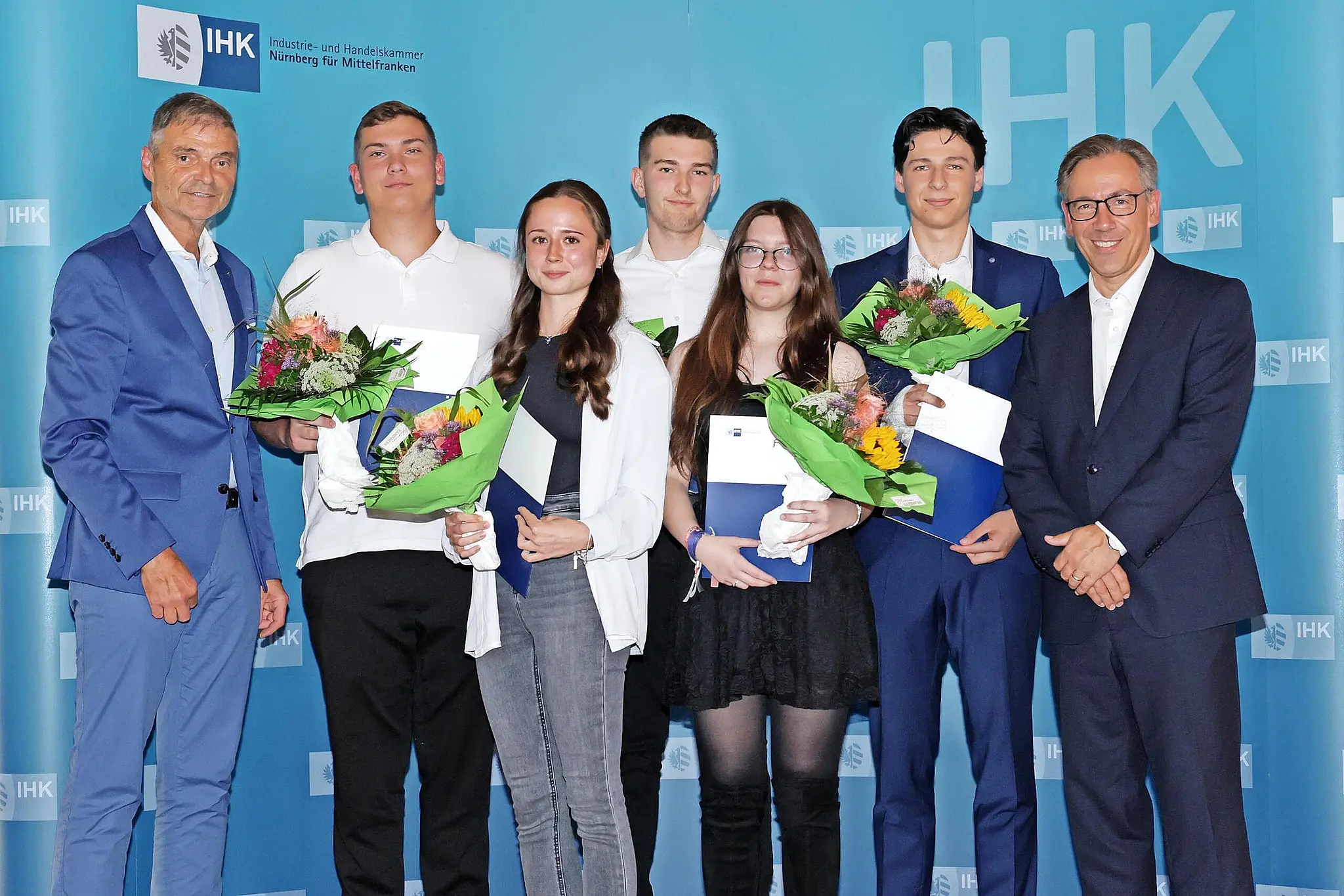 Gremsdorf 99 Azubis sind nun qualifizierte Fachkräfte IHK-Vorsitzender Michael Thiem (links), Landrat Alexander Tritthart (rechts) und die Preisträger. // Kurt Fuchs von Redaktion TEILEN  11.08.2025 Gremsdorf 68 Auszubildende in kaufmännischen und 31 in technischen Berufen aus dem Landkreis Erlangen-Höchstadt haben in diesem Sommer erfolgreich ihre Abschlussprüfung vor der IHK Nürnberg für Mittelfranken abgelegt. Sie nahmen im Forum der Barmherzigen Brüder in Gremsdorf ihre IHK-Abschlusszeugnisse entgegen. Michael Thiem, der Vorsitzende des IHK-Gremiums Herzogenaurach-Höchstadt/Aisch, Landrat Alexander Tritthart und Knut Harmsen, Leiter der IHK-Geschäftsstelle Erlangen, überreichten den erfolgreichen Absolventinnen und Absolventen die Zeugnisse und Auszeichnungen. Michael Thiem sprach den Absolventinnen und Absolventen die besten Glückwünsche aus: „Mit Ihrem Ausbildungsabschluss haben Sie neben Arbeits- auch sehr viel Lebenskompetenz und Fähigkeiten erworben. Sie sind nun qualifizierte Fachkräfte, die unser Arbeitsmarkt und unsere Gesellschaft so dringend brauchen.“Als Prüfungsbeste wurden folgende Auszubildende ausgezeichnet: Sophie Balog, Verkäuferin, Netto Marken-Discount Stiftung & Co. KG, Höchstad; Sophie Übelacker, Kauffrau für Büromanagement, m & i – Klinikgesellschaft in Herzogenaurach GmbH; Paul Roberts, Kaufmann für Groß- und Außenhandelsmanagement, Fachrichtung Großhandel, Autohaus Josef Pickel GmbH & Co. KG, Erlangen; Alexander Keiner, Industriemechaniker, Schaeffler Technologies AG & Co. KG, Herzogenaurach; Noah Popp, Mechatroniker, Schaeffler Technologies AG & Co. KG, Herzogenaurach. red