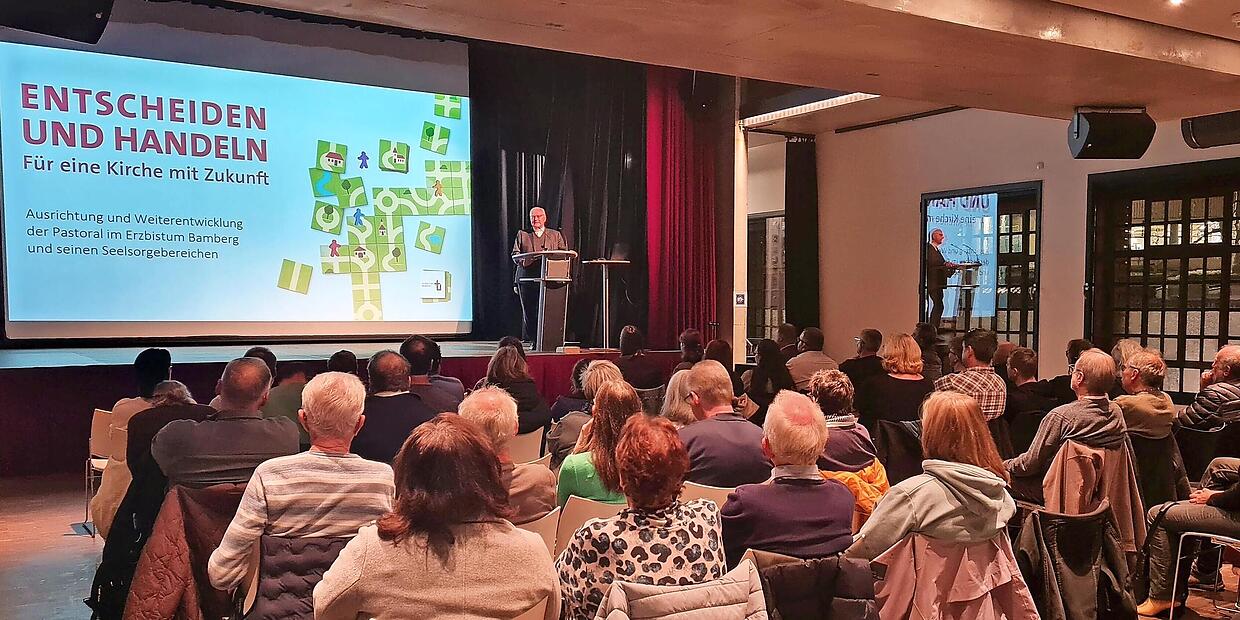 Dort informierte der Leitende Pfarrer der Region Kilian Kemmer über das Zukunftsprojekt der Erzdiözese Bamberg. Unter dem Motto „Entscheiden und Handeln“ soll auf die rasanten Veränderungen in Gesellschaft und Kirche unter dem Eindruck rückläufiger personeller und finanzieller Ressourcen geantwortet werden, bevor nur noch Reaktionen möglich sind.