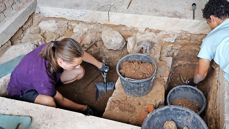Doch nicht nur Kleinteile fördern die Schüler zutage. „Die Befunde sind sagenhaft“, freut sich der betreuende Lehrer Christian Plätzer. Tatsächlich wurde bei der Grabung das Fundament der ursprünglichen Bima entdeckt – der zentrale Platz für die Tora-Lesung. „Sie ist vollständig erhalten, wir können das Oktogon exakt vermessen“, erklärt auch Kristina Fleischmann vom Verein Forum Alte Synagoge.
